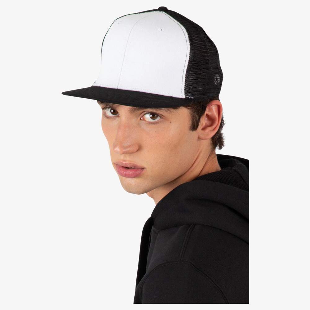 Trucker hat med 6 paneler i bomuld polyester. Består af 65% bomulds serge og 35% polyester, denne hat tilbyder komfort og holdbarhed. Den er udstyret med et net af polyester for bedre luftning og et svettebånd dobbeltforet med bomuld for øget komfort. Plastikjusteringen gør det muligt at justere hatten for optimal fastgørelse.