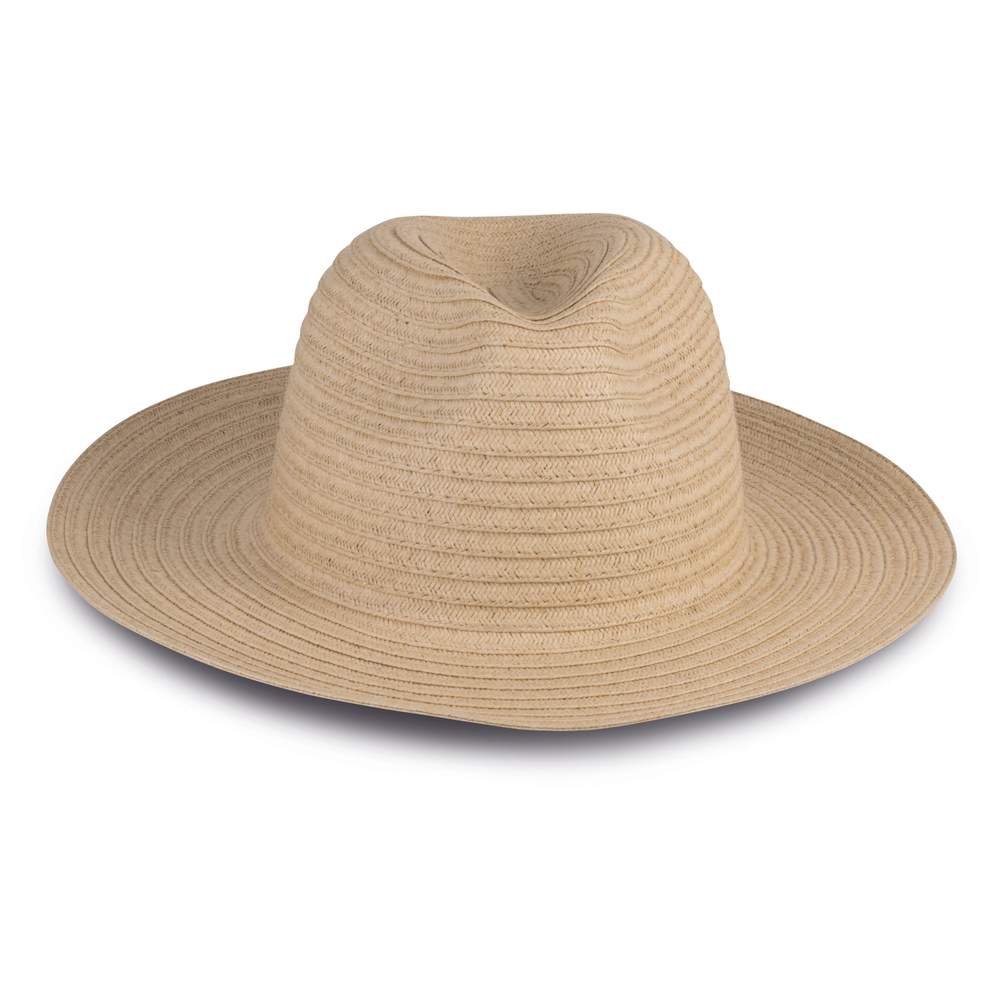 Denne hat af vegetabilsk fiber har en klassisk stil, lignende Borsalino-modellen, med lange kanter på 7cm. Den er et tilbehør til at supplere en dragt. Den sælges uden bånd, som kan bestilles separat.