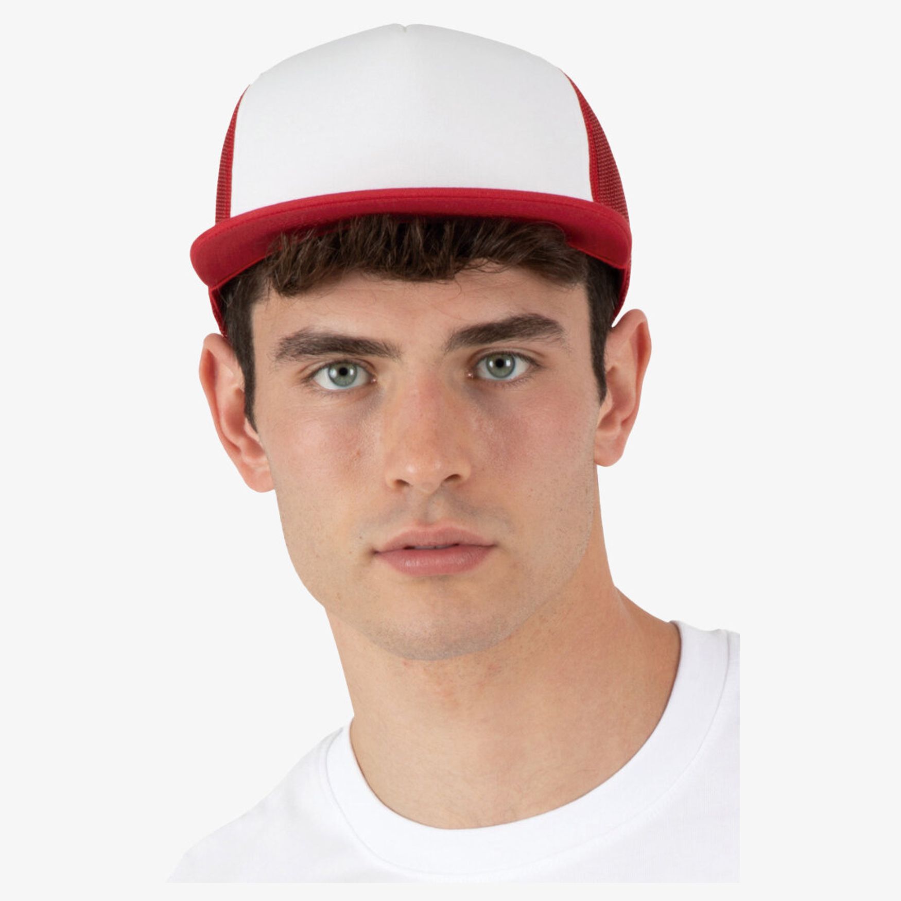 Klassisk trucker kasket med 5 paneler, fremstillet i cotton polyester. Den består af 60% cotton og 40% polyester. Strukturen med 5 paneler sikrer optimal komfort. Den er udstyret med en svampet belægning på det forreste panel (tykkelse 6mm), som gør det nemt at trykke eller broder din logo eller visuel. En plastikjusteringslås gør det muligt at justere størrelsen. Denne model er ideel til tilpasning med broderi eller tryk, hvilket giver en stor overflade til at vise din visuelle identitet. Den er egnet til forskellige arrangementer og kommunikationsmidler.
