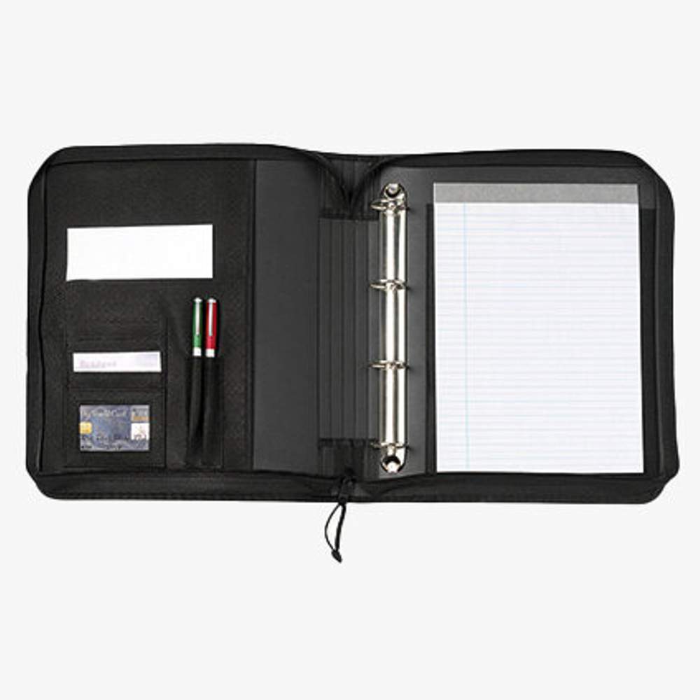 Poseaffærdssæk designet til transport af dokumenter og kontorudstyr. Den indeholder en noteblok på 30 sider, to løkker til opbevaring af blyanter og et indbygget mappeholder. Designet omfatter også en ringbindere til effektiv organisering af ark. Flere indvendige og udvendige lommer giver mulighed for opbevaring af forskellige genstande som telefoner, nøgler og andre tilbehør. Dimensioner : 35,5 x 31 x 6,4 cm. Sammensætning : 100% polyester.