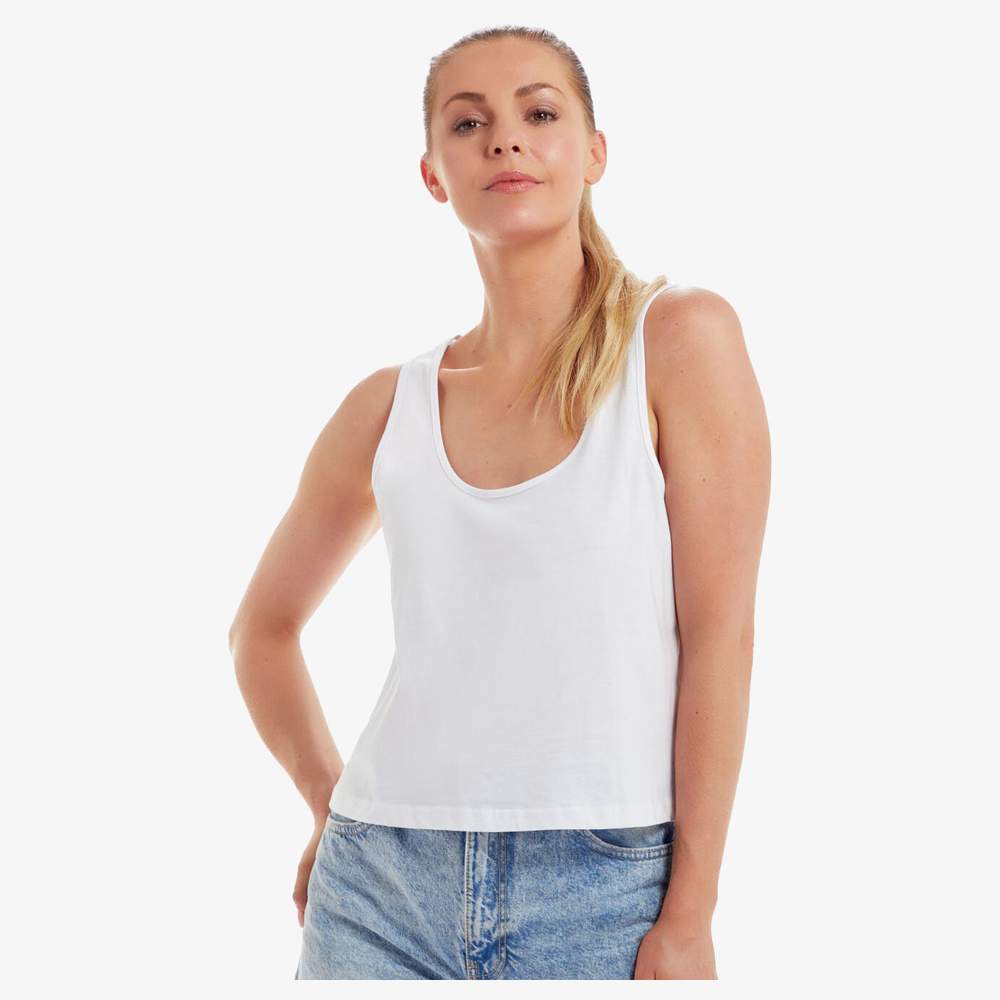 M127 - Kvinders økologiske crop vest m127 personalisering - white
