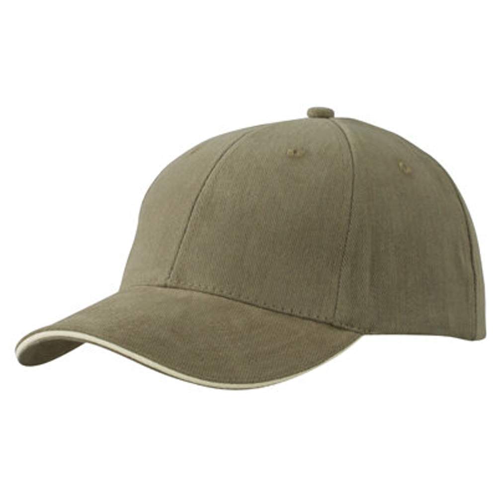 mb024 - 6-panel sandwich cap Hård bomuld mb024 tilpasset - olive/beige