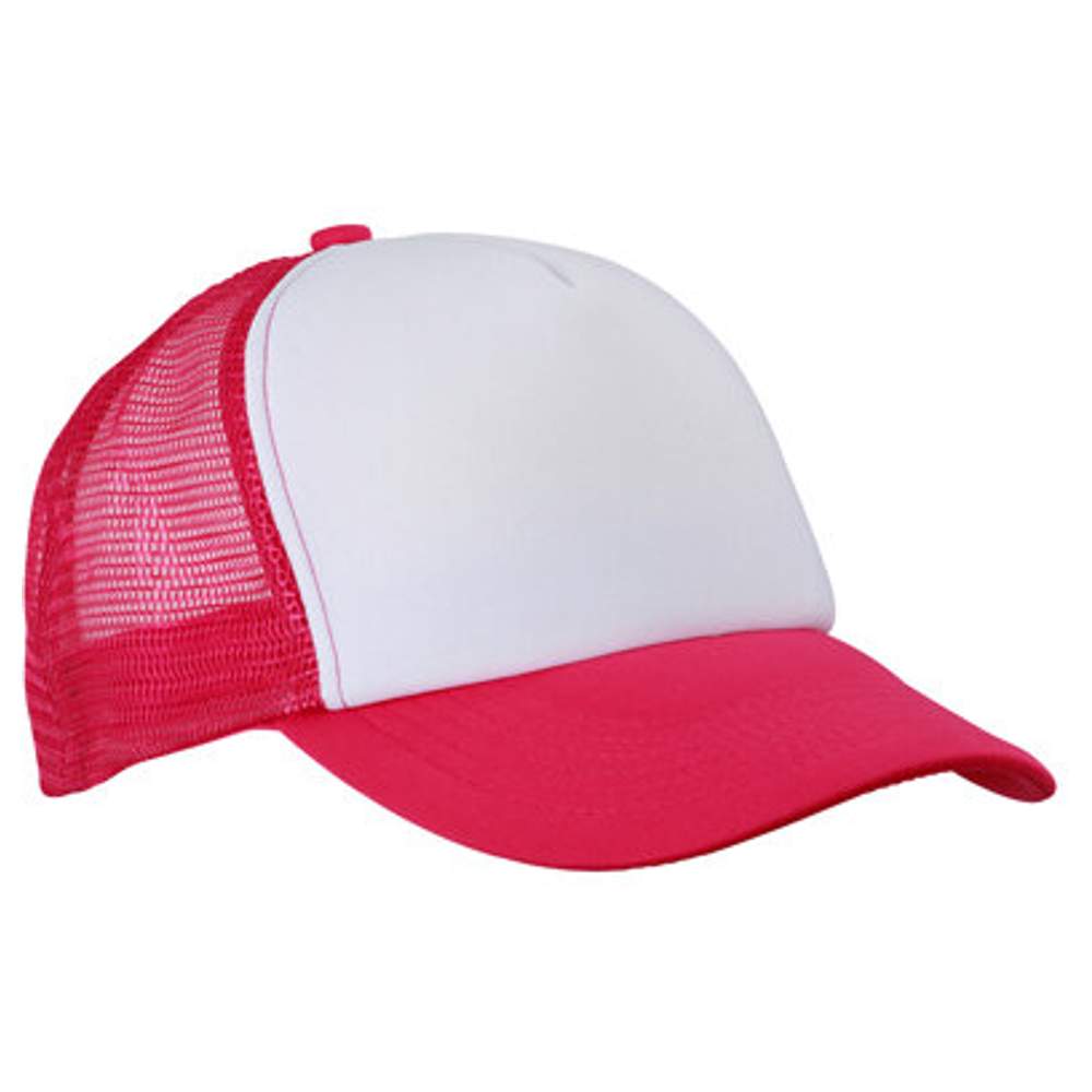 mb070 - 5-panel polyester mesh cap mb070 med dit logo - white/neon_pink
