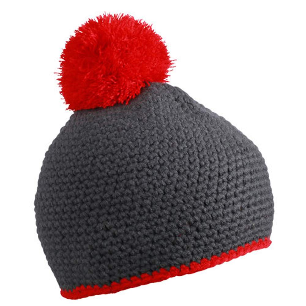 mb7964 - Pompon hat med kontraststribe mb7964 - carbon/red