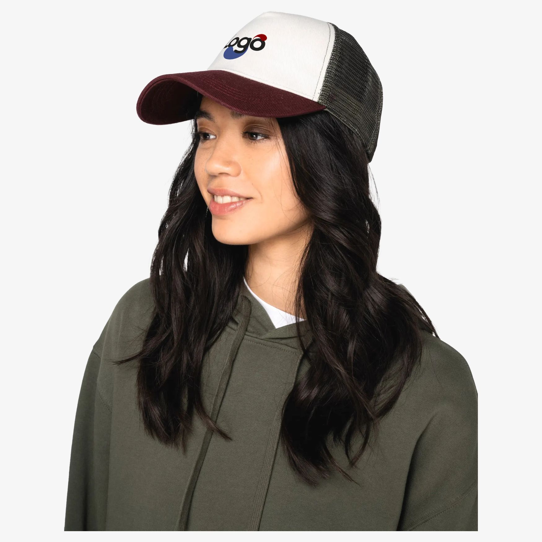 Den unisex 5-panel kasket er justerbar med en rem i genanvendt plast bagpå. Den har en skygge med stikninger og et forstærket frontpanel. Den indvendige finish er lavet med et skråbånd. Skyggen og frontpanelet er i 100% økologisk bomuld, mens bagpanelerne er i mesh 100% genanvendt post-forbruger polyester. Stoffet kombinerer twill og mesh, lavet af økologisk bomuld og genanvendt polyester.