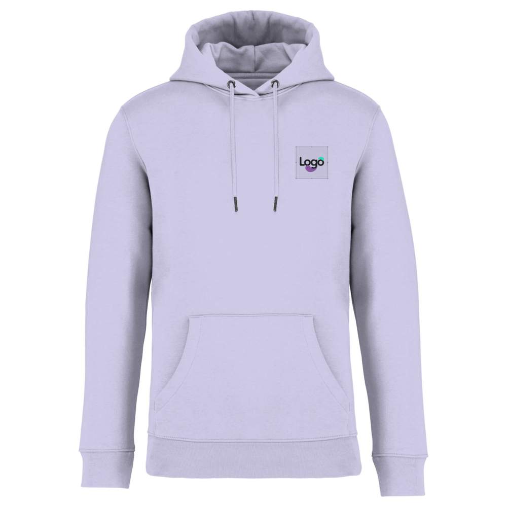 Unisex sweatjacke med hætte lavet af tre-tråd gratfleece (Low Shrinkage Fleece : prætrukket fleece). Passer tæt med kanguro lomme, ribbet bund på jakken og ærmene. Dobbelt sømning på ærmene, armhuler, bund af jakken og halv måne. Indvendig renhedsstripe i nakkebag og hætte dobbelttet med hovedmaterialet og stopperpunkt. Rundt snor med ender og øjne af recyclet metal. Sammensætning: 85% peget ring-spun biologisk bomuld og 15% post-consumer genbrugspolyester. Mulighed for personliggørelse ved brodering eller din logo.