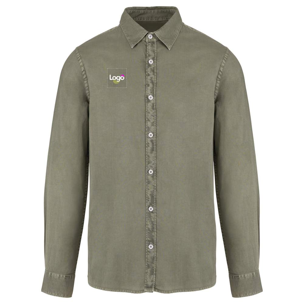 T-shirt i bomuld twill for mænd. Straight fit. Klassisk knapning med perleknapper. Afslappet rygsøm « plad rond ». Knapnet « capucin » mansjetter. Beklædningsgenstand farvet efter montereing: farverne kan variere lidt. Mulighed for personliggørelse ved broderi. Sammensætning: 100% biologisk kammet bomuld.