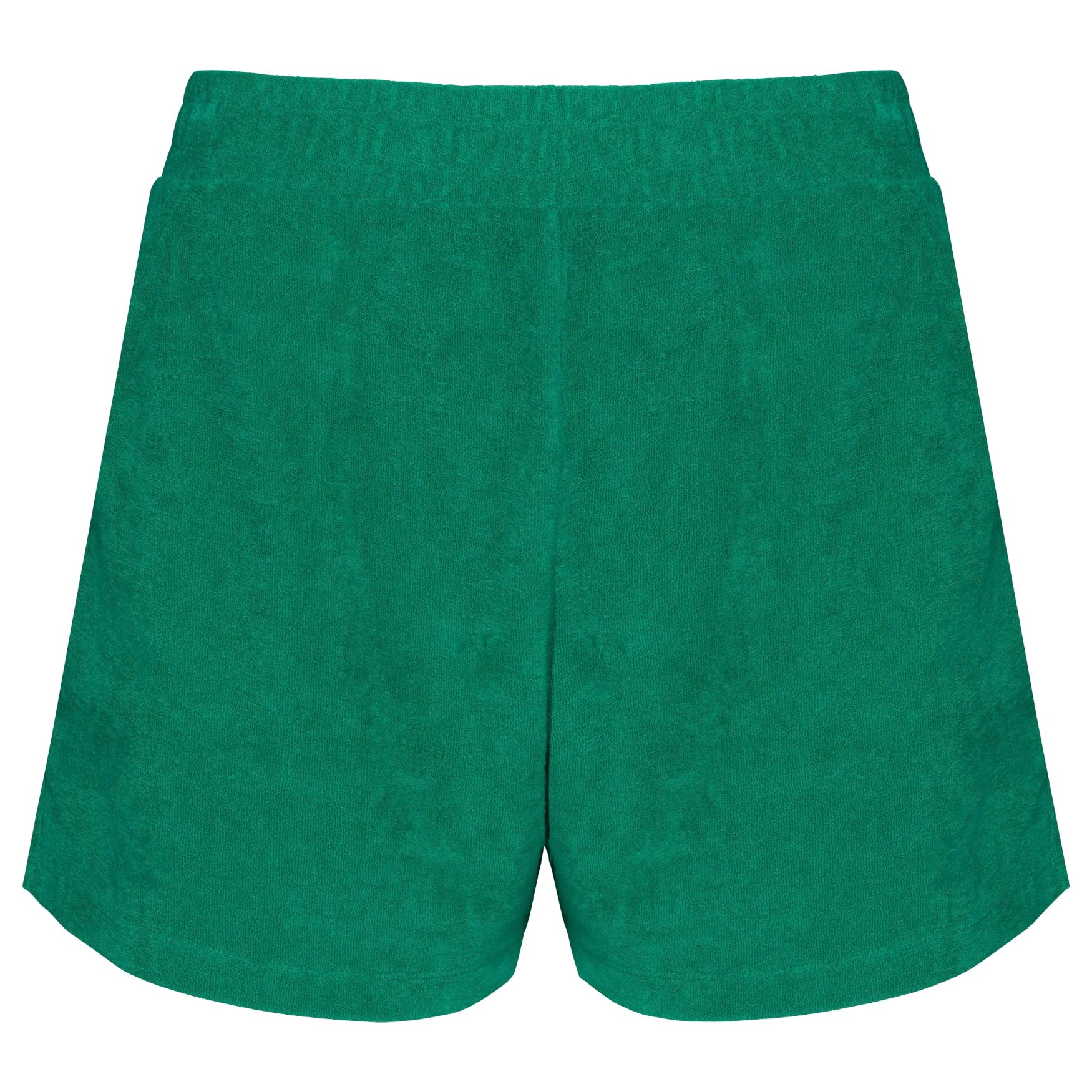 Kvindeshort i Towel Terry-materiale, lavet af frottéstof bestående af 80% økologisk bomuld og 20% genanvendt polyester efter forbrugerbrug. Beklædningen er vasket efter samling og kan have farvevariationer. Udstyret med elastisk talje og to sidelommer.