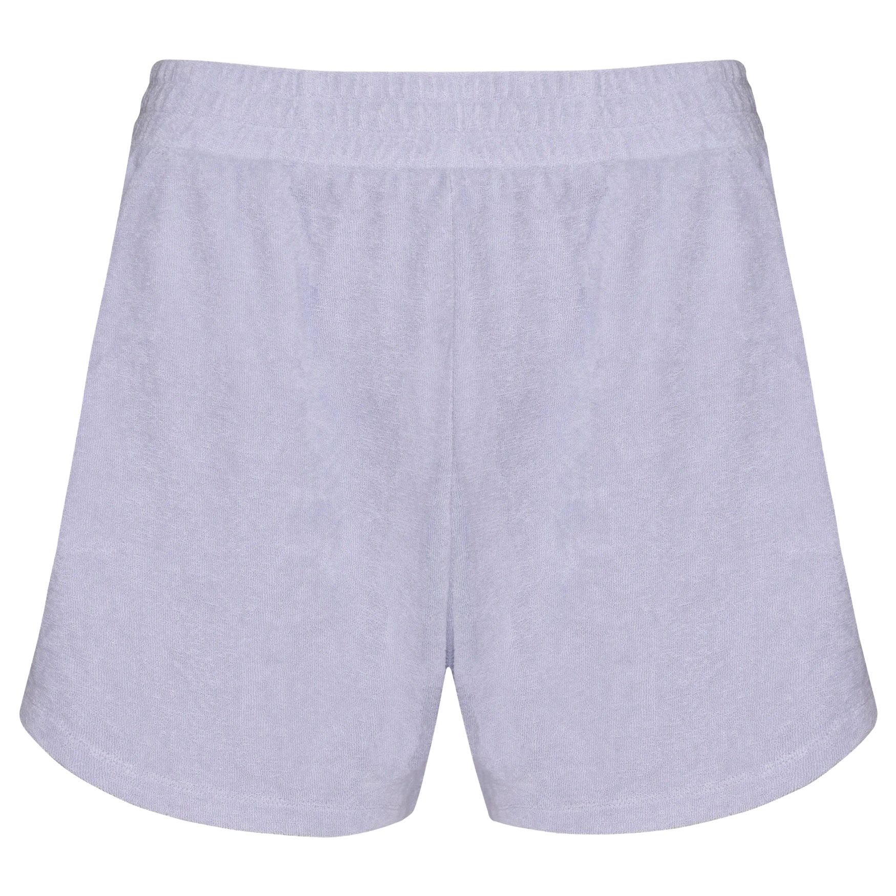 Kvindeshort i Towel Terry-materiale, lavet af frottéstof bestående af 80% økologisk bomuld og 20% genanvendt polyester efter forbrugerbrug. Beklædningen er vasket efter samling og kan have farvevariationer. Udstyret med elastisk talje og to sidelommer.