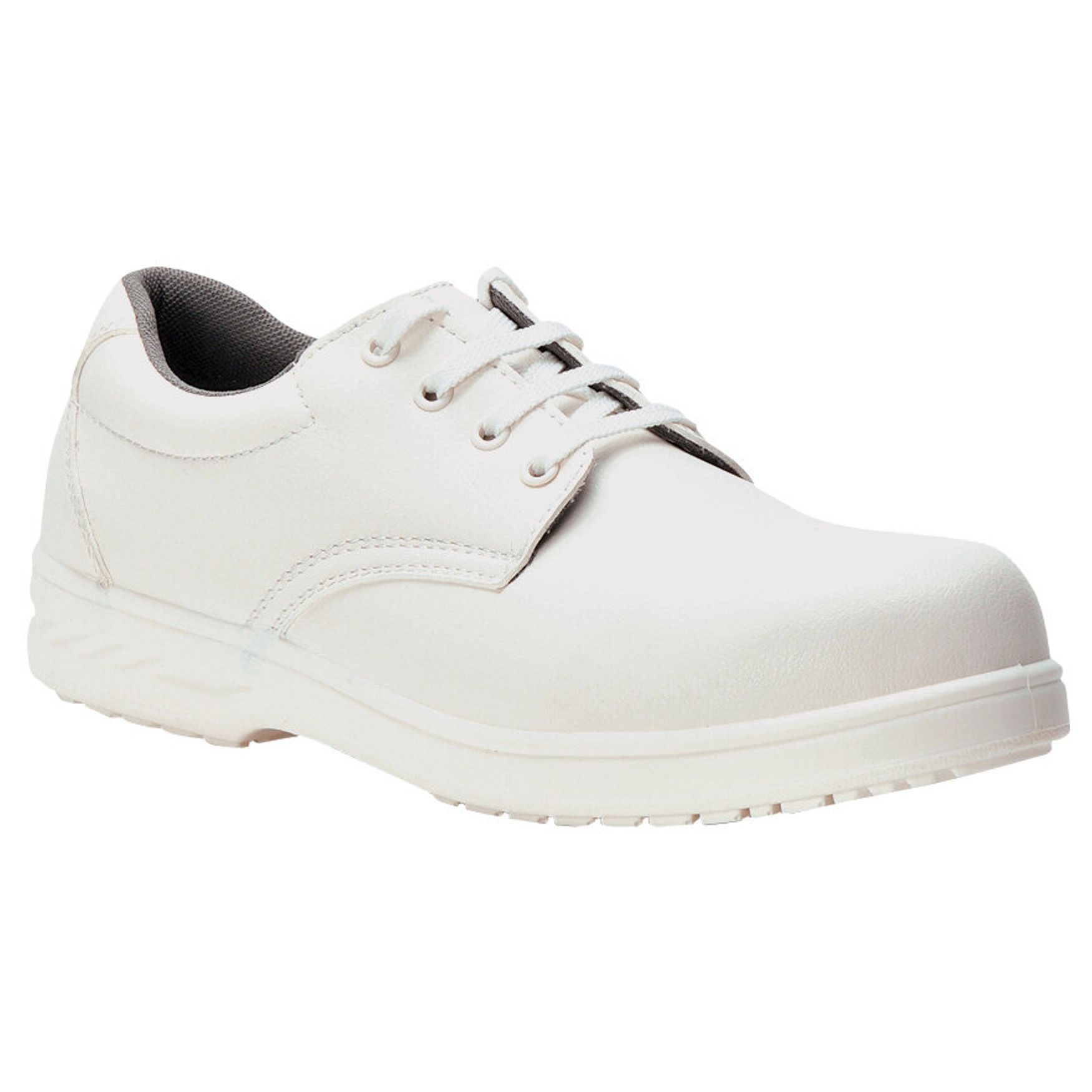 Sikkerhedssko til fødevarer Steelite™ med snøring, designet til at tilbyde komfort og beskyttelse i krævende arbejdsmiljøer. Produktionen af høj kvalitet mikrofiber sikrer øget vandtæthed og holdbarhed, samt mulighed for nem vedligeholdelse gennem maskinvask. Den antidrillende polyuretansål er specielt designet til at minimere gliderisikoen og undgå fødevarekontaminering, hvilket sikrer optimal hygiejne i fødevareindustrien. Denne sko kombinerer funktionalitet og robusthed for at opfylde behovene hos fagfolk, der er opmærksomme på deres sikkerhed og kvaliteten af deres arbejde.