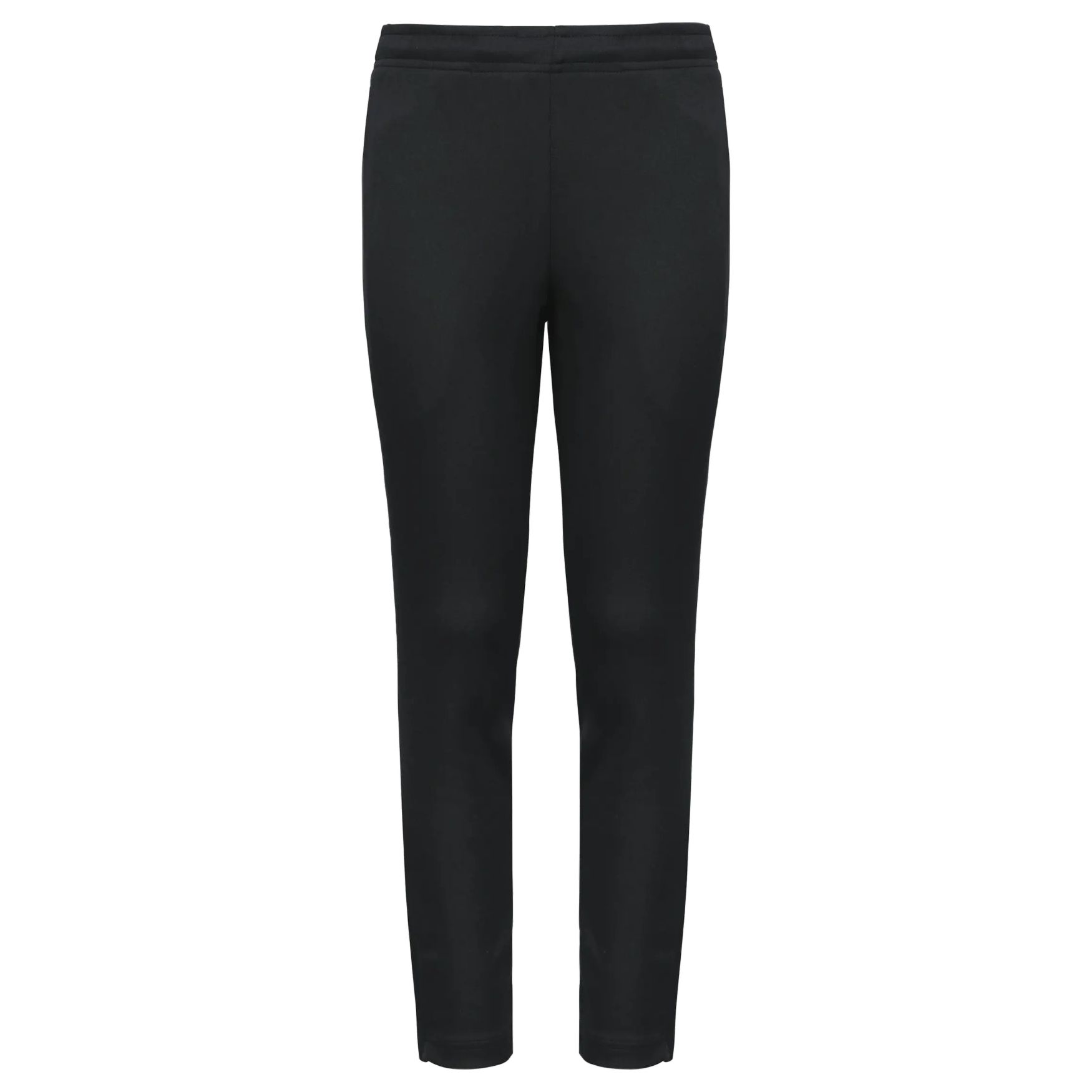Børnetræningsbukser er designet i mat polyester interlock. De har en elastisk talje med snor med gummispids placeret indvendigt. To sidelommer er udstyret med lynlåse. Buksebenenes bund er med lynlås og dobbelt søm. Et aftageligt mærke letter tilpasningen.