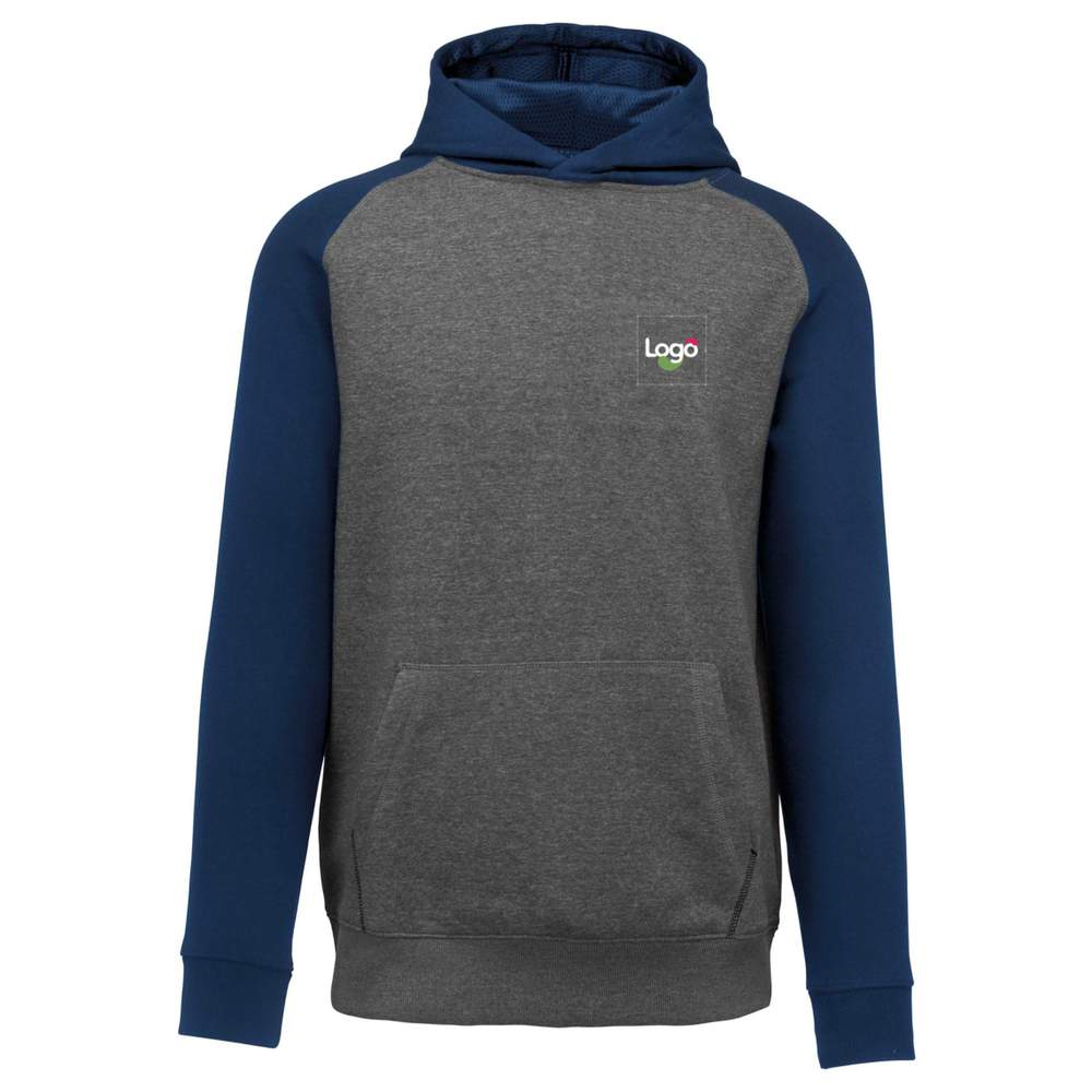 Barnets toppetøj med kappe tofarvet af blødt stof, som tilbyder komfort og varme. Konstruktionen er med raglan ærmer og en kontrasterende kappe foret med netstof i tone på tone. Den har lommer med en fluorescerende telefonlomme og en passer til øretelefoner for praktisk brug. Åbningerne og bunden af tøjet er med dobbelt tykke riller for en bedre holdbarhed. Dette toppetøj er tilpasningsdygtigt, hvilket giver mulighed for at tilføje logoer eller visuelle elementer for en unik identifikation.