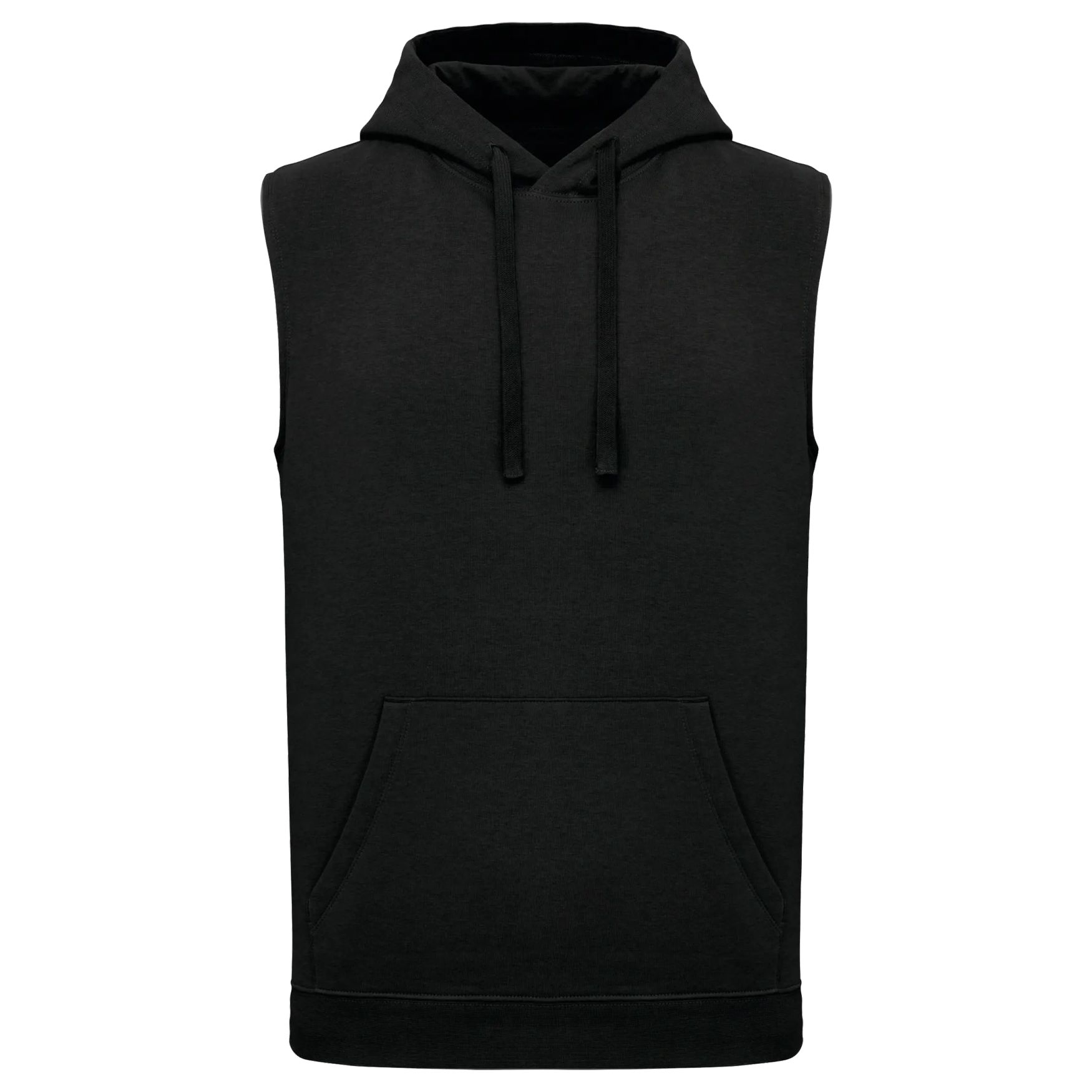 Sweat Shirt à Capuche sans Manches Unisexe er en hættetrøje i børstet sweatshirtstof med lige snit, foret hætte i jersey og fladt snøretræk i tone-i-tone. Kængurulommer, 1x1 ribkant nederst, halvmåne på ryggen. Sammensætning: 80% bomuld, 20% polyester. Mulighed for tilpasning.
