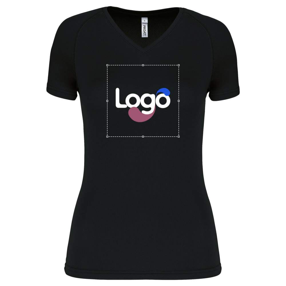 PA477 - T-shirt til sport korte ærmer V-hals kvinde pa477 tilpasning - black