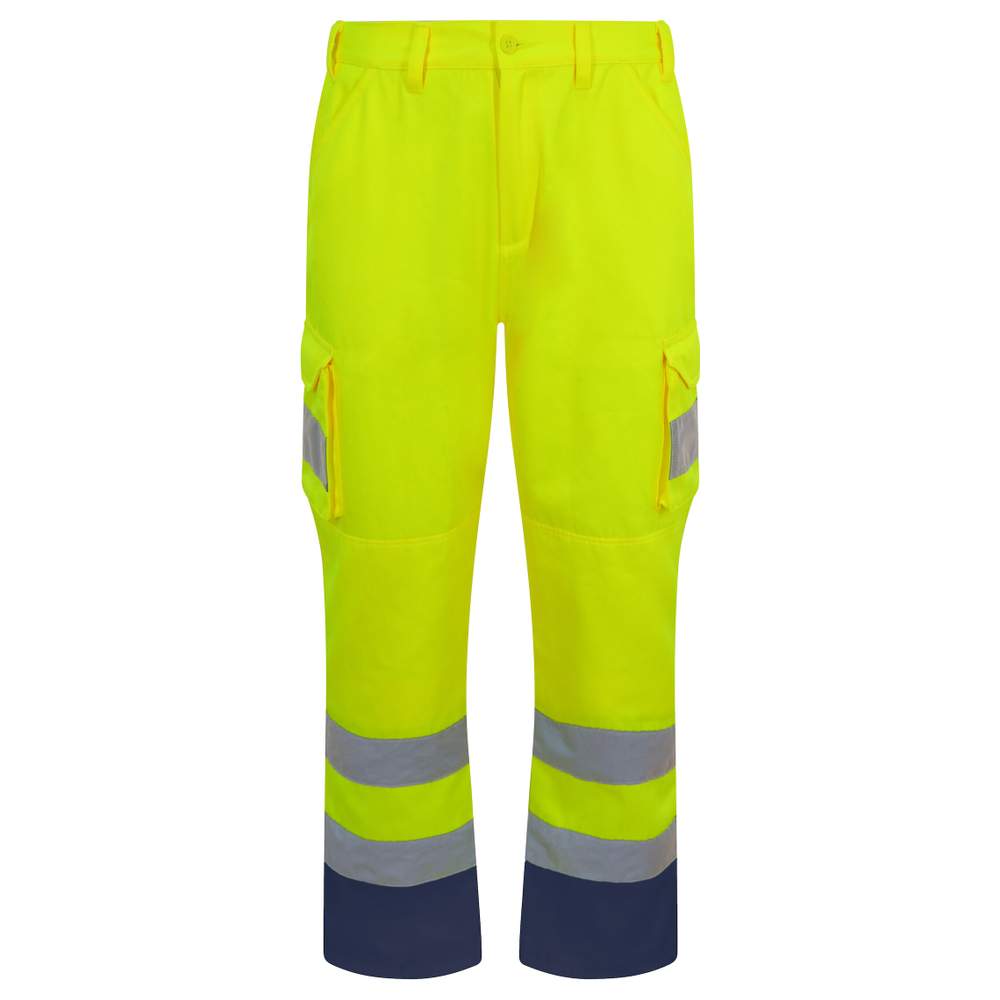 Arbejdstroje designet til at tilbyde komfort og synlighed. Det er udstyret med en vandtæt finish for øget beskyttelse mod fugt. Den elastiske talje på siden, kombineret med syv taljebånd, sikrer en tilpasset pasform. En zipper med glidelås gør lukning og åbning nem. Den har to side-lommer med søm, samt to praktiske cargolommer til opbevaring af værktøj eller tilbehør. En baglomme med selvklebende bånd og sikkerhedslås tilbyder ekstra plads til vigtige genstande. Indre lommer tillader tilføjelse af knæbeskyttelser for øget beskyttelse. To refleksstrimler rundt om benene forbedrer synligheden i dårligt oplyste forhold.