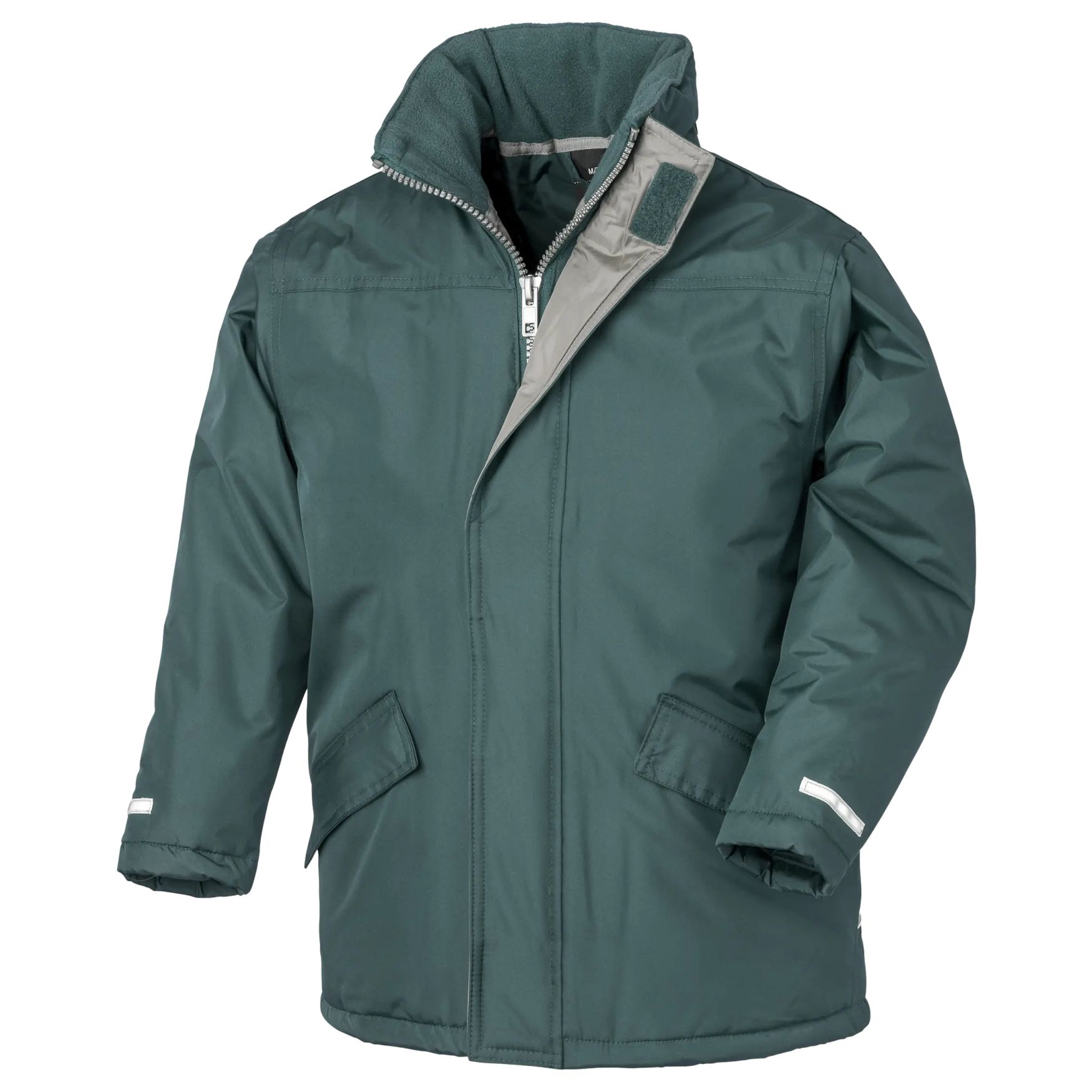 Denne blouson parka polyester varm til børn er designet til at give komfort og beskyttelse i vintermånederne. Den er fremstillet med et ydre i 100% StormDri PU-belagt Polyester Pongee-belægning, en mellemlag i Quilted Polyester fyld og et foder i matelasseret polyester. Den har en 3-sektioners kappe i halsen med justeringsanordning på siden, en fuld 7mm forlængelse på foran, 2 usynlige forpocketter under stormklap med polarfoder, et navn- og klassetiket i lomme til venstre og polarfoder i lommerne for at holde hænderne varme. Reflekterende sikkerhedsstripe over ryggen sikrer øget synlighed. Denne blouson kan personliggøres ved broderi til identifikation af dit firma eller hold.