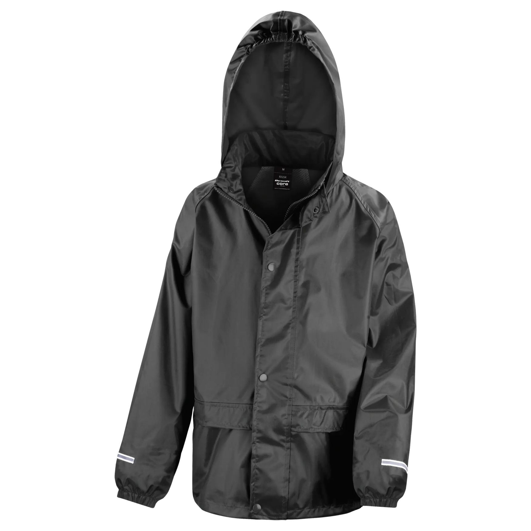 Junior Regnjakken er en regnjakke til børn, designet til at begrænse vandindtrængning ved dårligt vejr. Integreret hætte med elastikkant, forstykke med trykknaplukning, ventileret ryg i netstof og to forlommer.