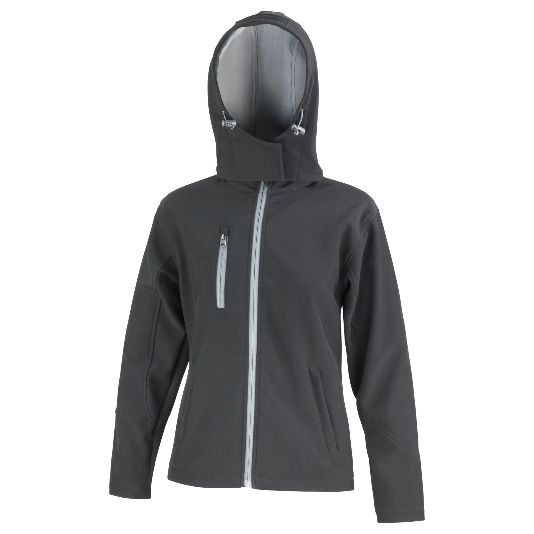 Tx Softshell til kvinder er en softshell til kvinder i 3 lag med justerbar skjult hætte. Vindtæt og åndbar, med mikrofleece indvendigt og lynlåslommer, til brug i omskifteligt vejr.