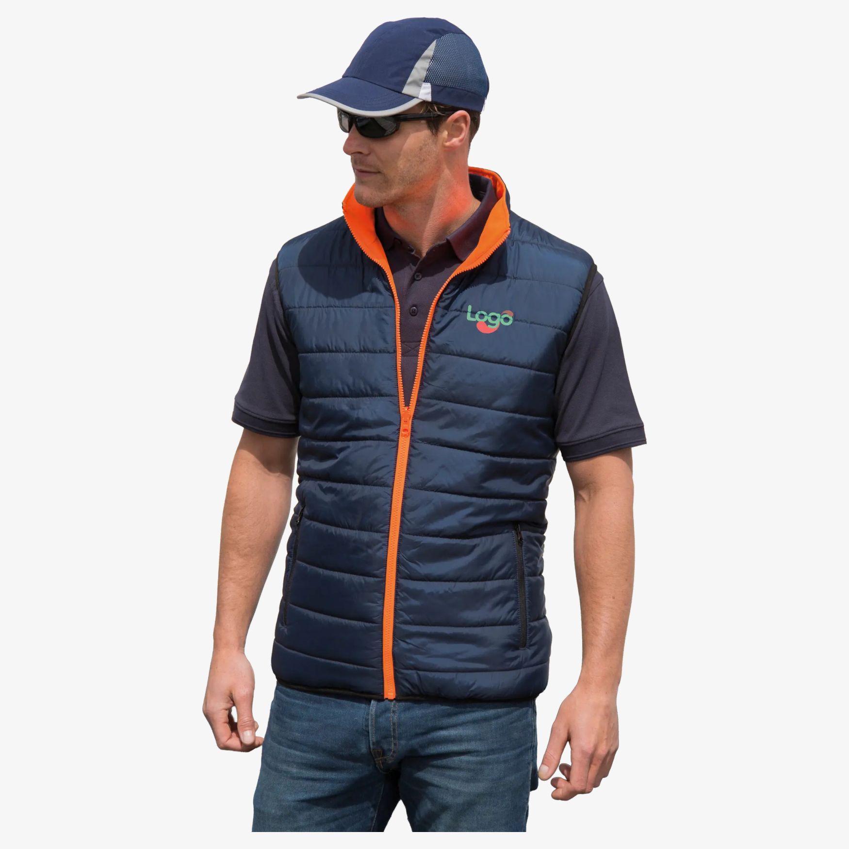 Den vendbare vatterede sikkerhedsvest er egnet til brug, der kræver høj synlighed. De trykte reflekterende bånd, den høje krave og lynlåslommerne bidrager til komfort og praktisk anvendelse. Designet til personlig mærkning.