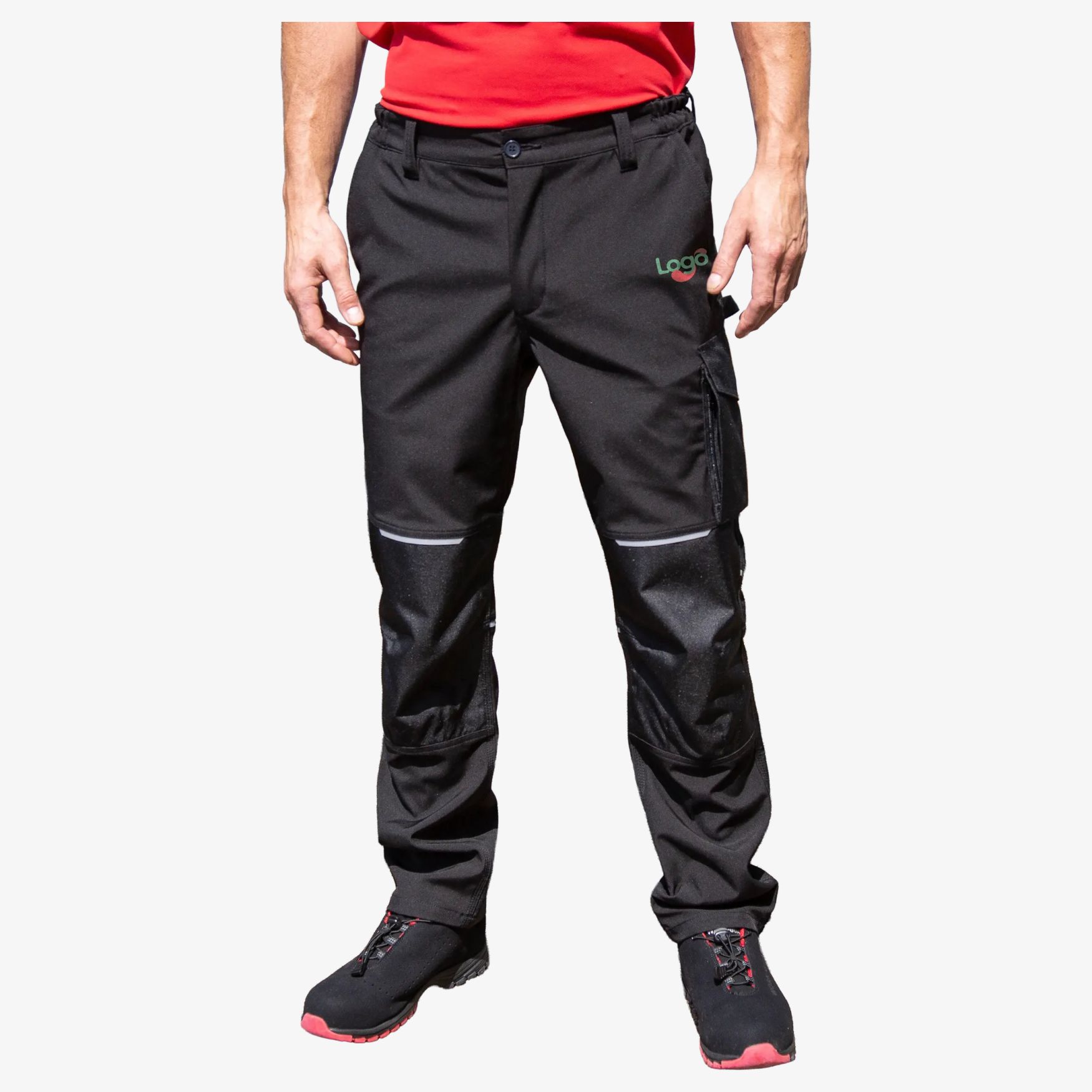 Softshell-bukser slim fit er arbejdsbukser i softshell-stof, beregnet til professionel brug med funktionelle lommer, forstærkede ledknæ og elastisk linning til justering. Mulighed for personalisering med logo.