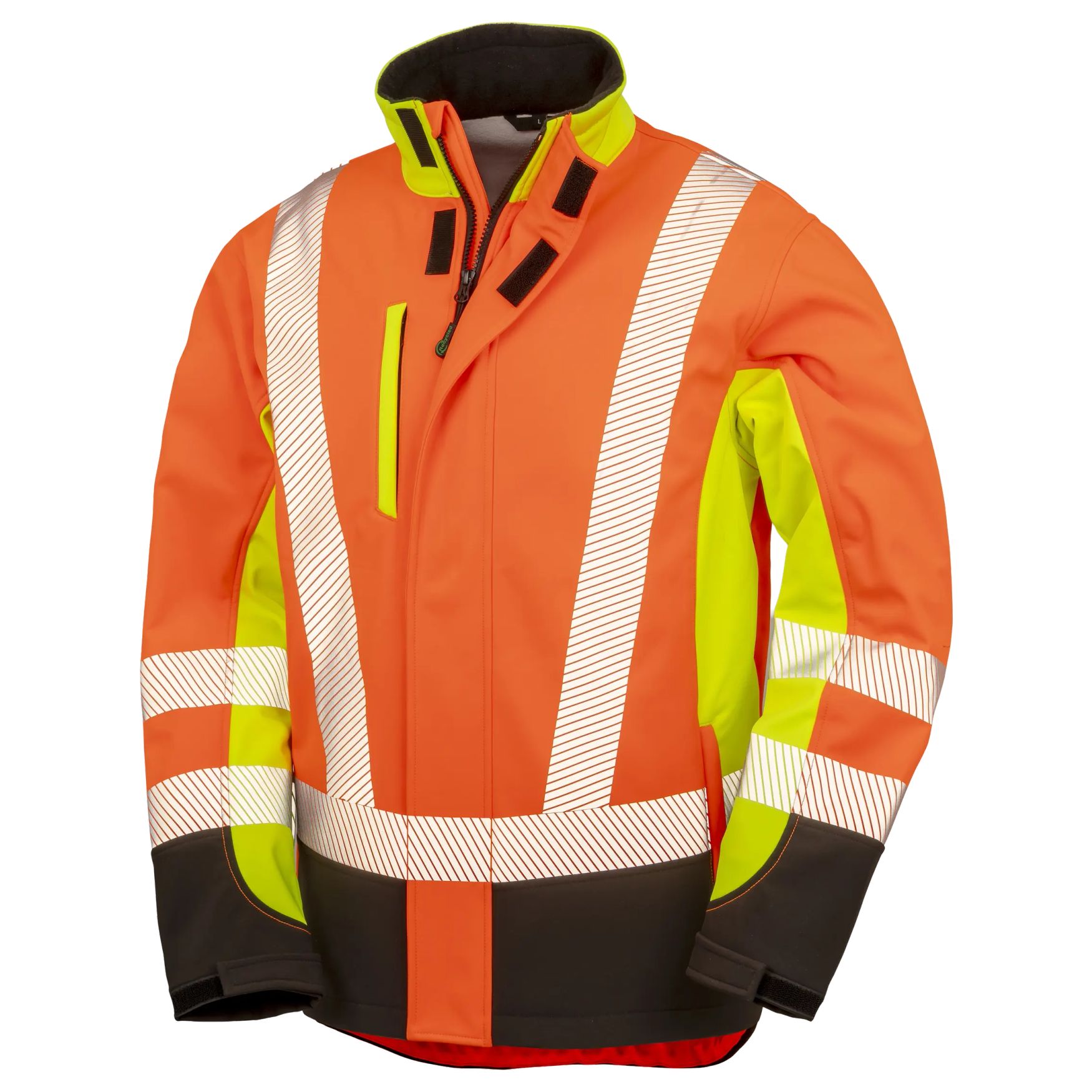 3-lags sikkerhedssoftshell er en genanvendt 3-lags softshelljakke med høj krave, hagebeskyttelse og mikrofleece indvendigt. Reflekterende bånd på arme, skuldre og krop. Lynlåslommer på bryst og i siderne, længere ryg og mørkt panel for at begrænse synlige mærker. Tilpasning med tryk mulig.