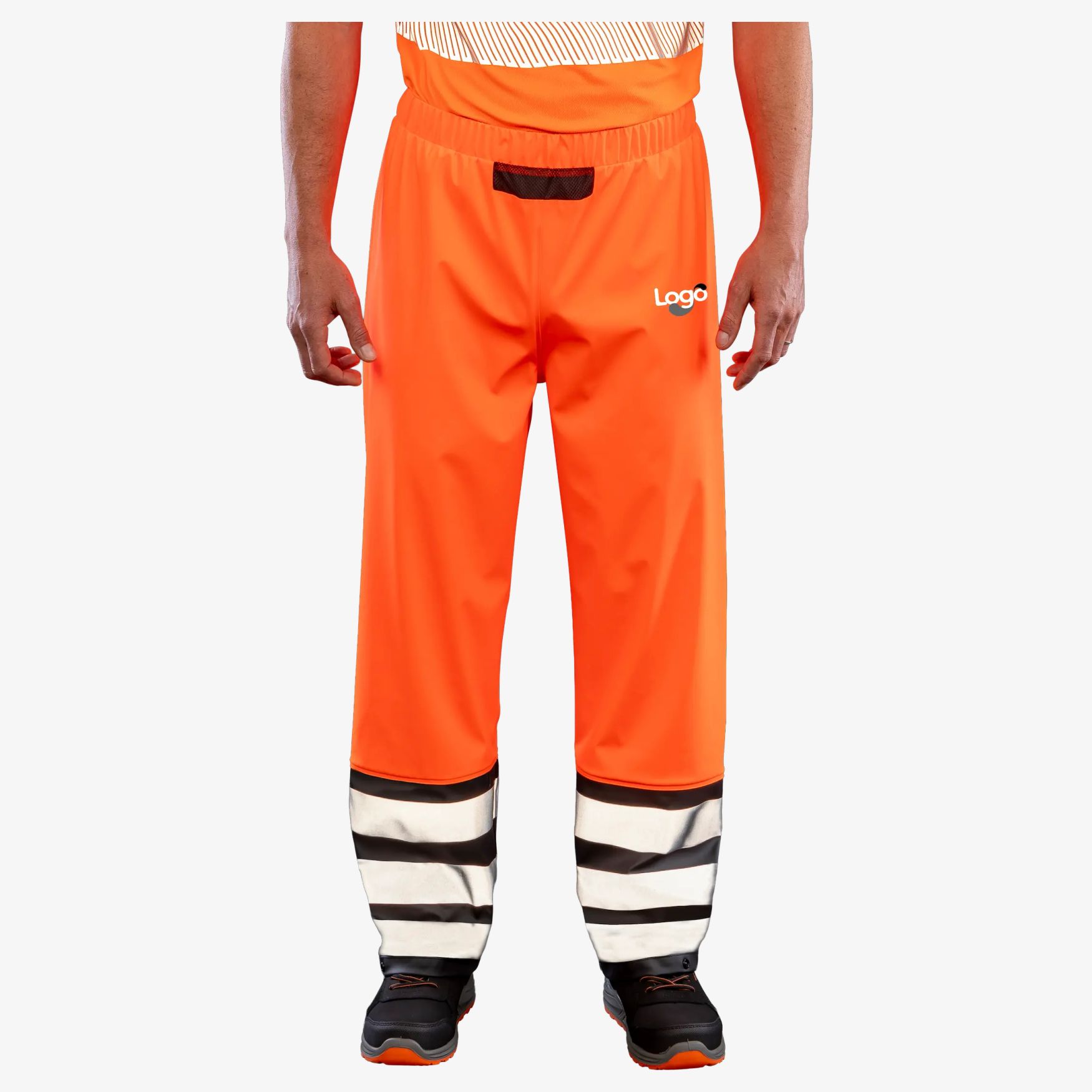Heavy duty-bukserne er vandtætte, åndbare og vindtætte arbejdsbukser. Svejsede sømme, elastisk talje og justerbare ankler med trykknapper. Påtrykte refleksbånd på benene. Tilpasning mulig.