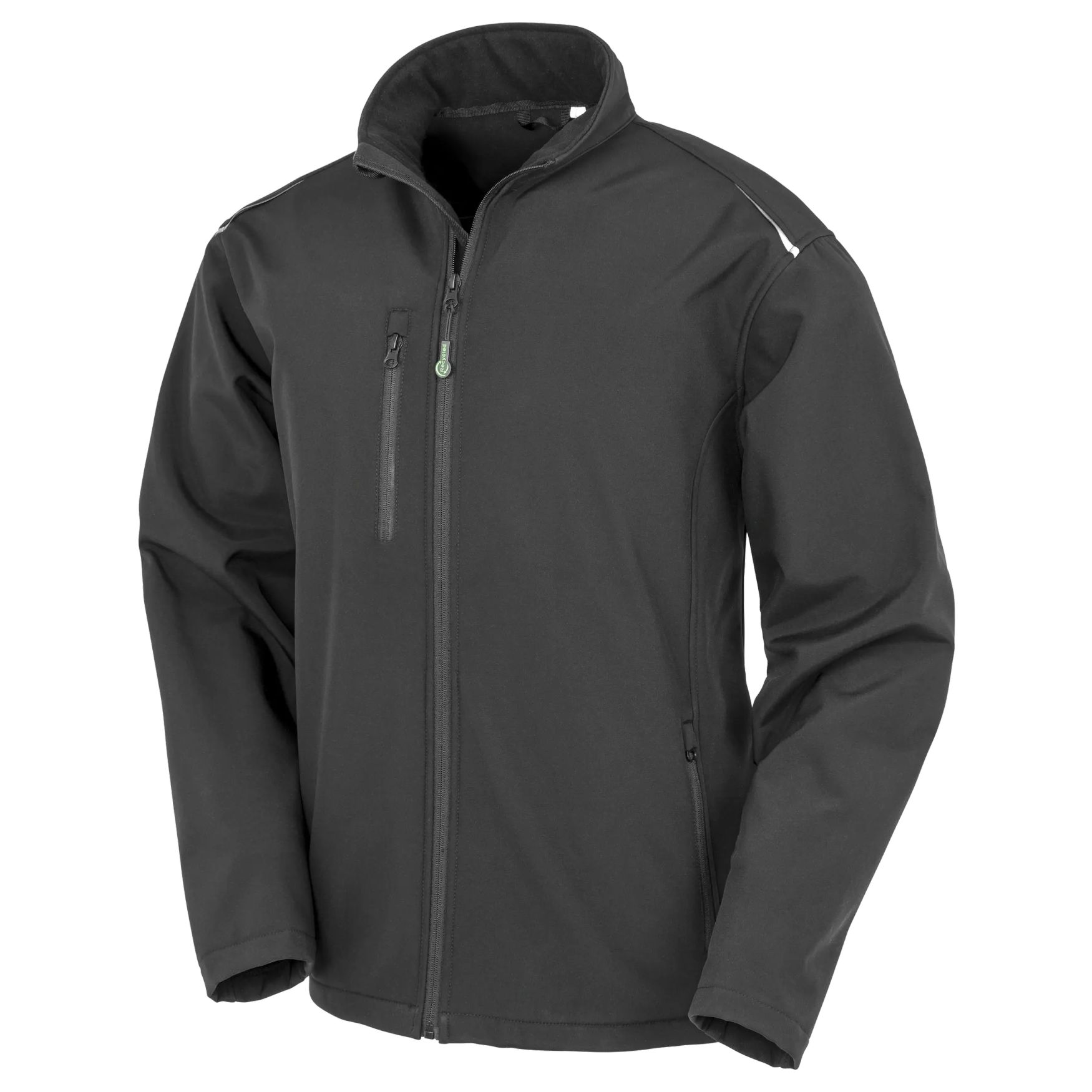 3-lags softshell er en genanvendt softshelljakke med blød fornemmelse, høj krave, figursyet pasform og lynlåslommer. 3-lags konstruktionen integrerer en TPU-membran, der begrænser vandindtrængning, samtidig med at den forbliver åndbar og vindtæt. Tilpasning mulig.