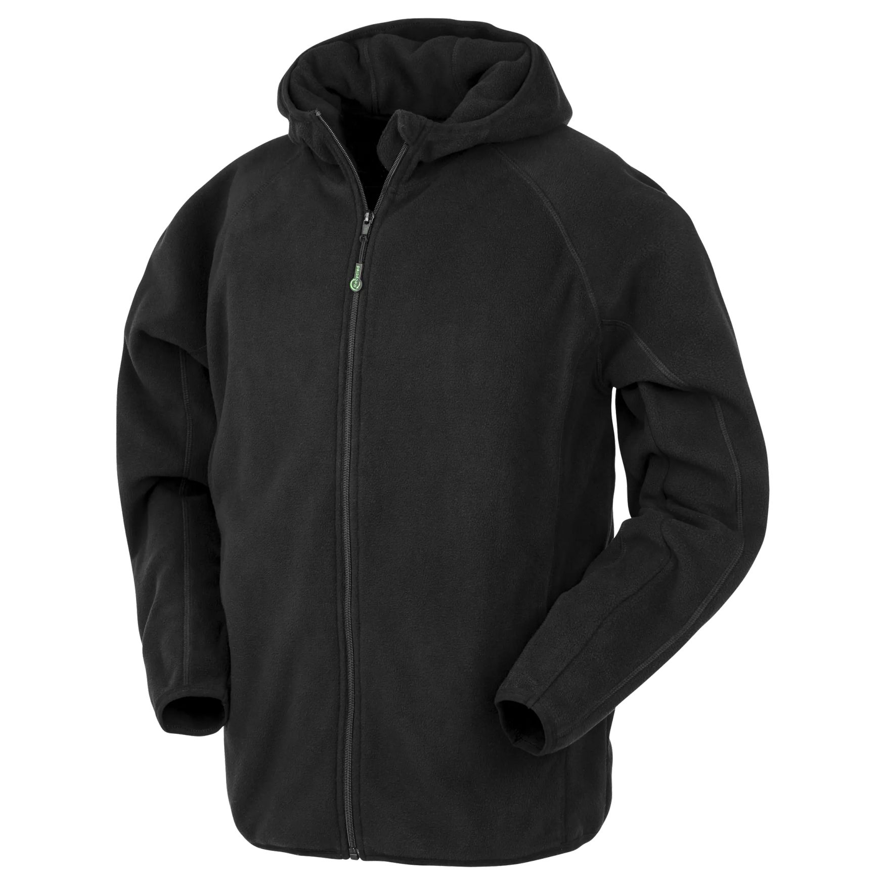 Den genanvendte microfleecejakke er en fleecejakke med lynlås, integreret hætte og sidelommer. Udformet til daglig brug; egnet som let lag i køligt vejr. Tilpasning mulig via mærkning.