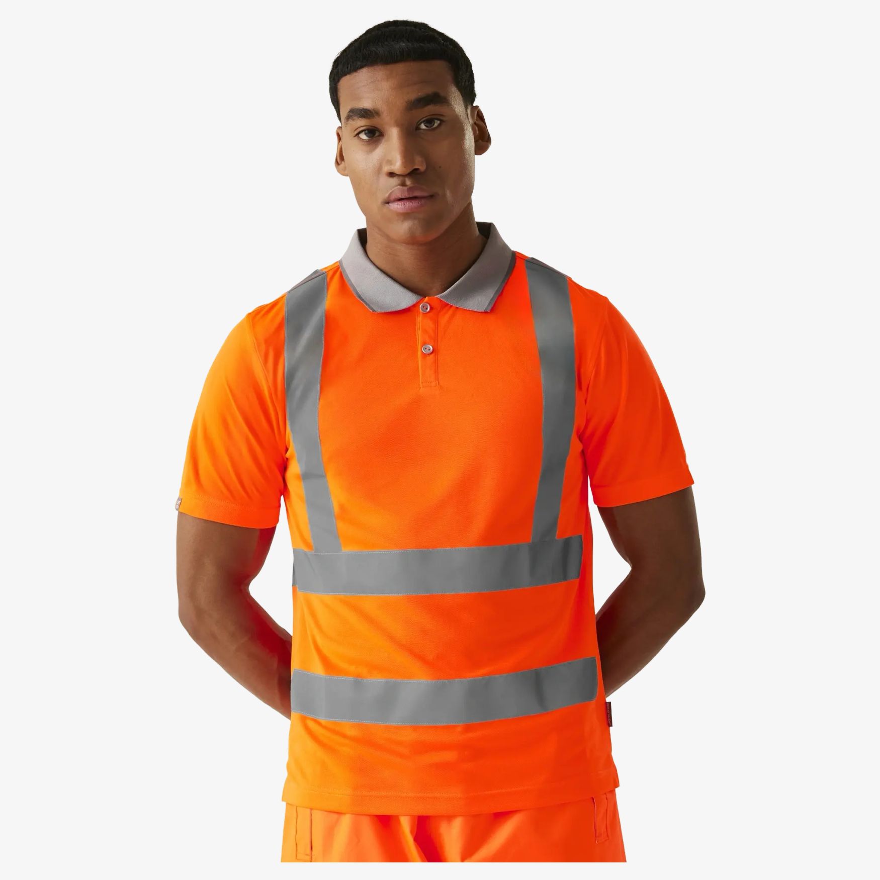 Hi vis polo er en polo med øget synlighed i piquéstrik, egnet til daglig brug. Den har en ribkrave, en 2-knaps stolpelukning, sideslidser og ikke-kontinuerlige reflekterende bånd placeret på sidesømmene.