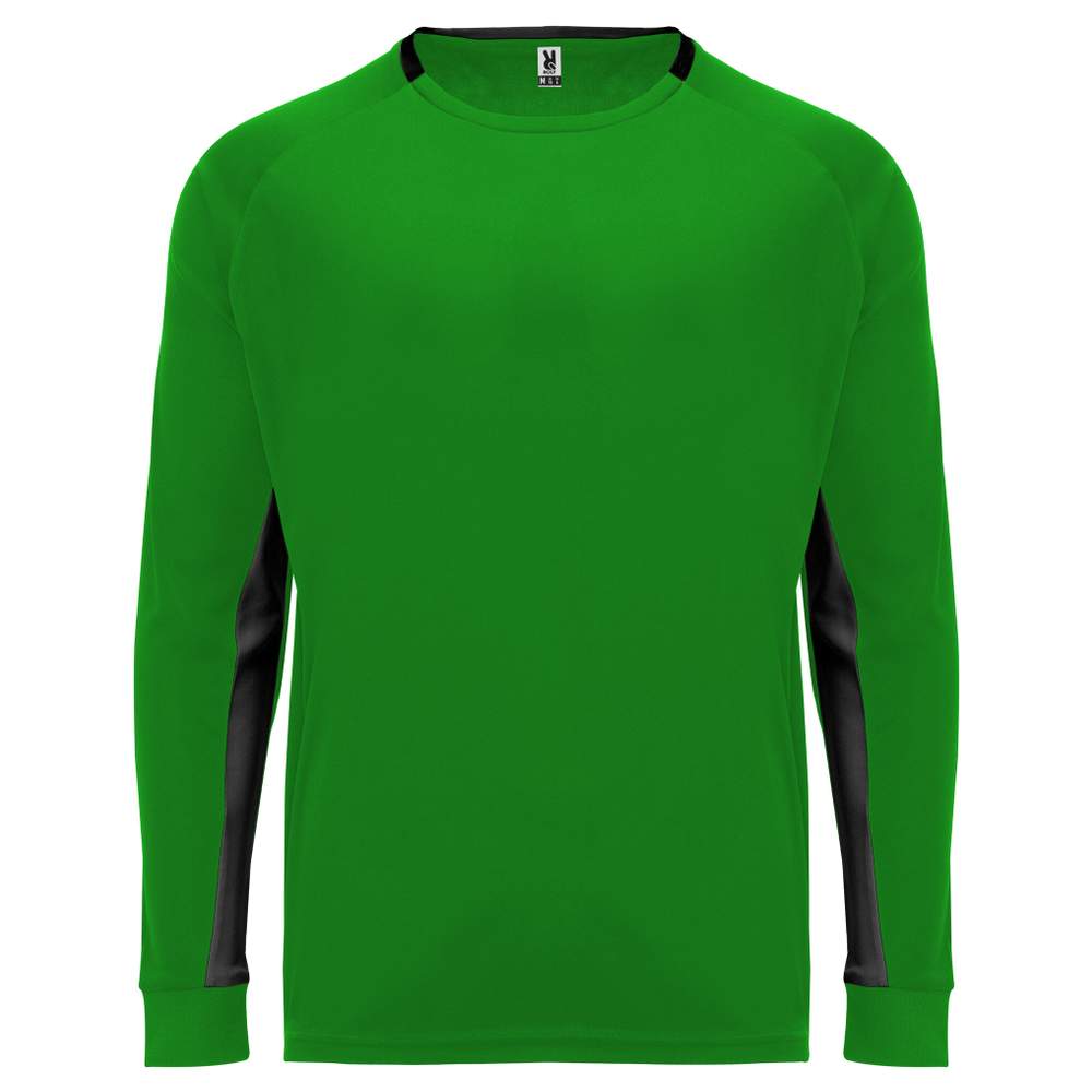 Unisex målmandstrøje fremstillet af polyester. Den har lange ærmer med pudede albuer for øget beskyttelse under træning og kampe. Kontrasterende paneler inde i ærmene tilføjer en visuel touch. Et kontrasterende detalje er til stede på bagsiden af kraven og ved håndledene. Denne trøje tilbyder optimal komfort og stor bevægelsesfrihed for målmænd.
