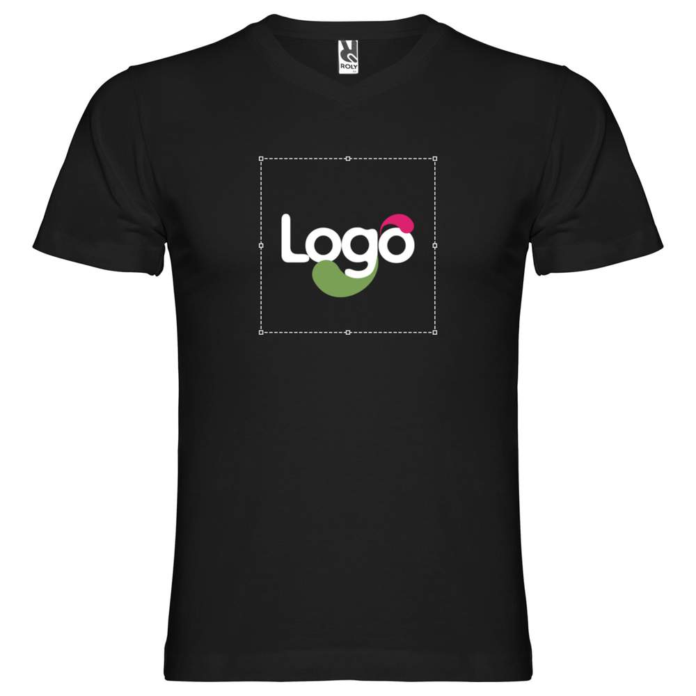 T-shirt med korte ærmer, skåret tubulært med V-hals med dobbelt lag. Rensningsstrimmel på hals og skulder. Fjernbart etiket. Sammensætning: 100% bomuld, enkelt jersey (undtagen grå farvetone: 85% bomuld, 15% viskose). Dette t-shirt tilbyder en ideel base for udtryk for deres visuelle identitet. Det kan personaliseres med deres logo, farver eller ethvert andet grafisk element for at imødekomme deres specifikke behov.