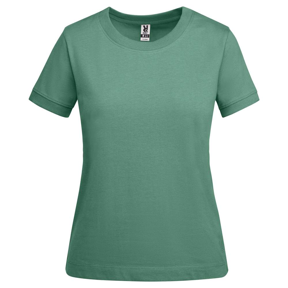 Kortærmet t-shirt til kvinder, lavet af tykt bomuld. Det har detaljer på ærmene og en rund hals i 2x1 rib. Syerne er forstærket og dækket på halsen. Det har sidesyne for en komfortabel pasform og et matcherende logo på venstre nederlag. Den brede sy i nederlaget øger holdbarheden. Det indeholder en fjernbar etiket.