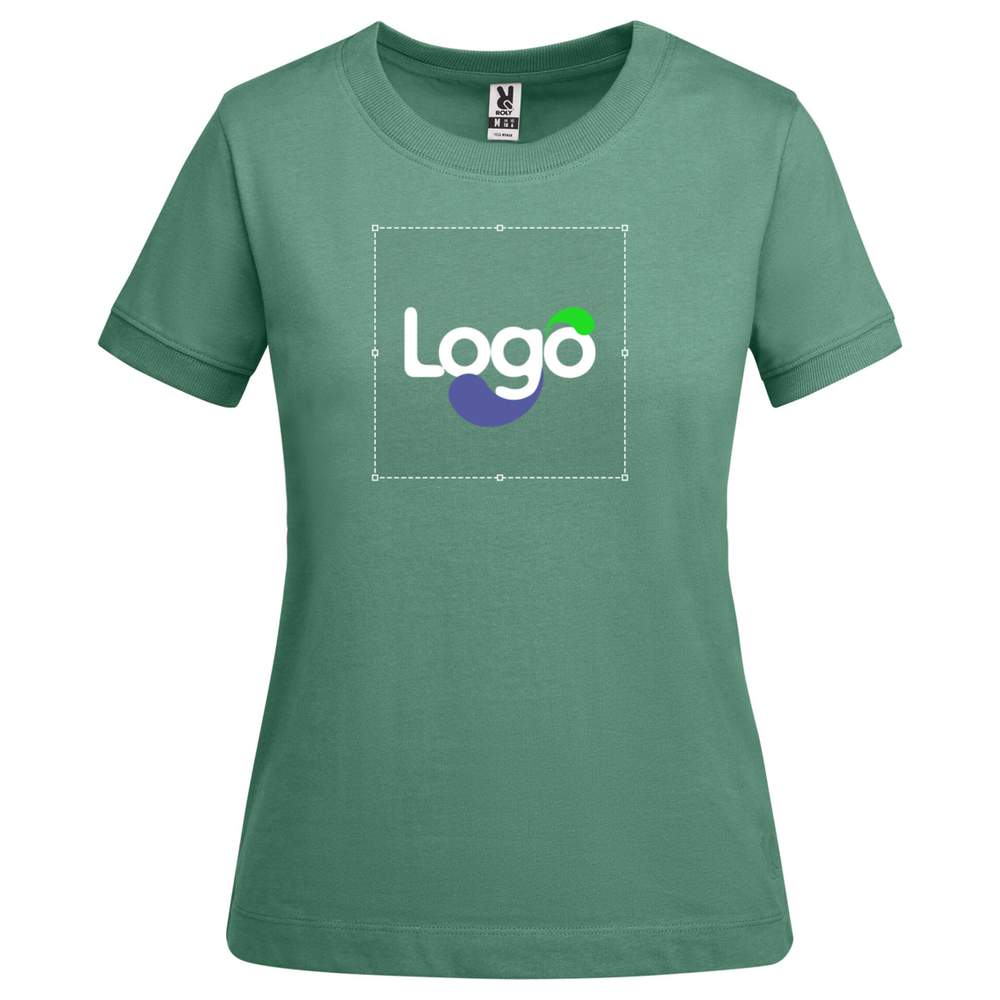 Tykt t-shirt med korte ærmer til kvinder i bomuld. Afslutning på ærmene og bred rund hals i 2x1 rib. Forstærkede sømme dækket ved kraven. Sidelængdesømme. Logo Roly tilpasset på venstre bundkant. Bred søm ved bundkant. Afbrydbar etiket. Sammensætning: 100 % bomuld. Dette t-shirt er personaliserbart, hvilket tillader tilføjelse af dit logo eller visuel til en effektiv kommunikation. Coupe: Klassisk. Hals: Rund. Ærmer: Korte. Sømme: Forstærkede