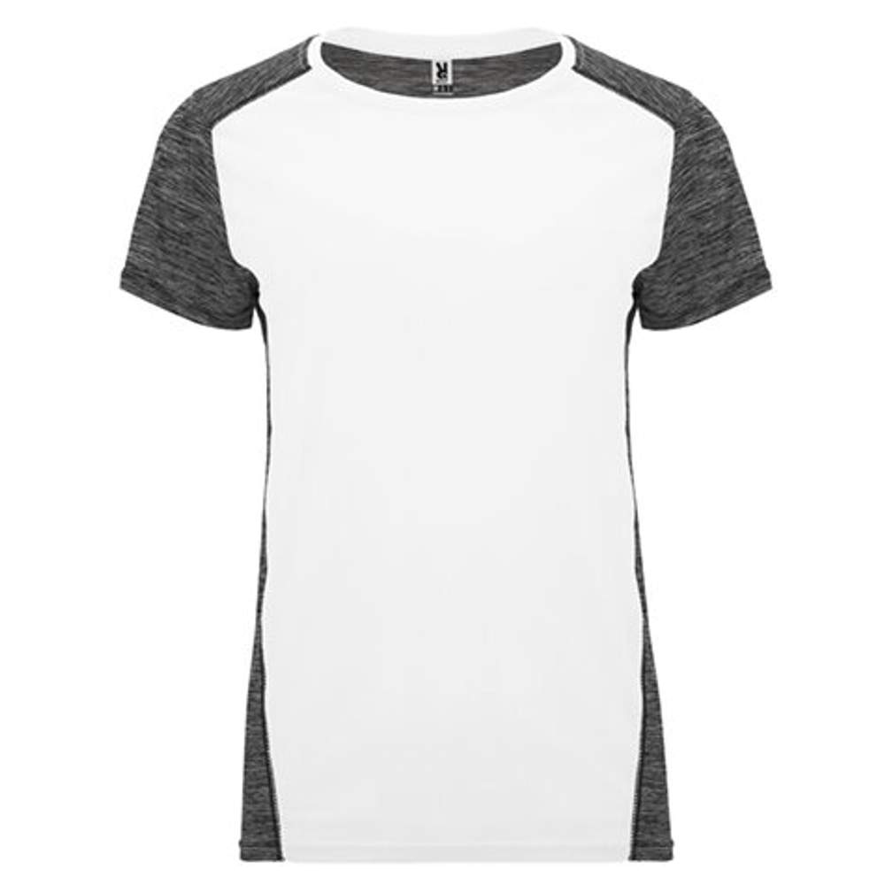 Teknisk t-shirt med korte ærmer til kvinder. Rund hals. Kombineret på ryg, skuldre og arme med to typer polyester. Hovedstof forsiden bird’s eye og stof space dye bagpå. Ryggen er lidt længere end forsiden. Åndbart model med nem tørretid. Aftagelig mærkning. Teknisk stof. Model åndbare Duo konsept.