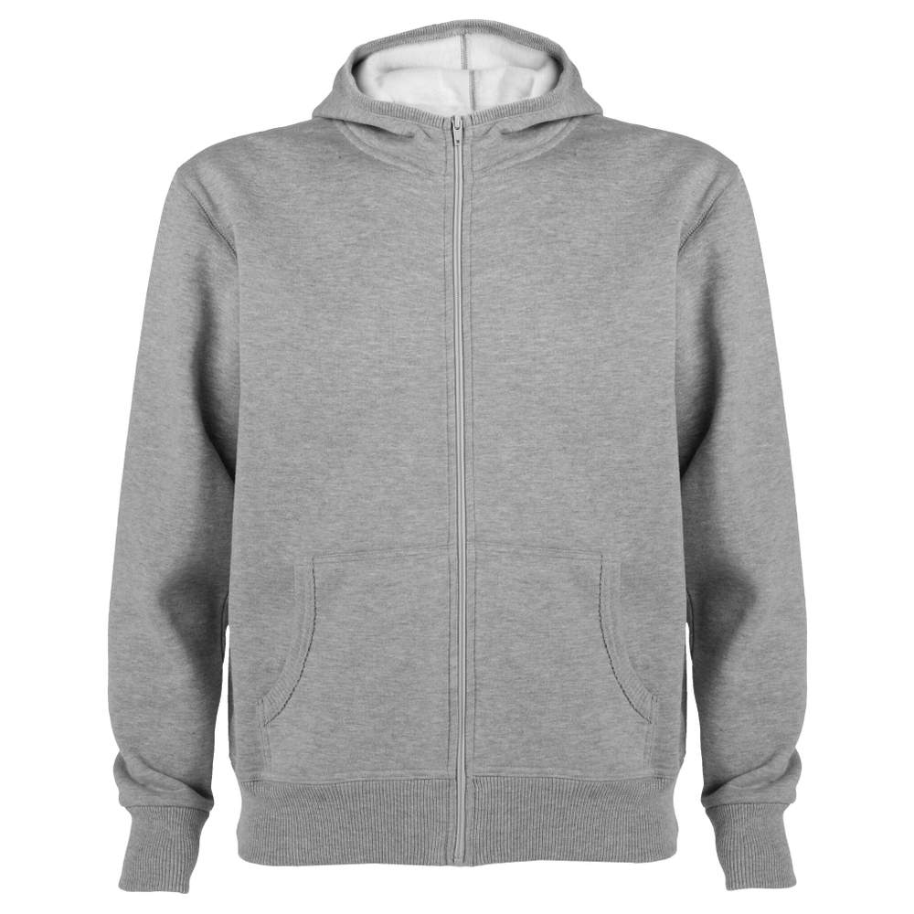Afslappet sweatjakke med kappe med zip. Kanten på kappe og forpande er bundet. Lomme i kangurostil. Ærmene og midten er bundet 2x2. Fjernbart mærke. Sammensætning: 50% bomuld, 50% polyester, moletråd. 3% elastan ved ærmene.