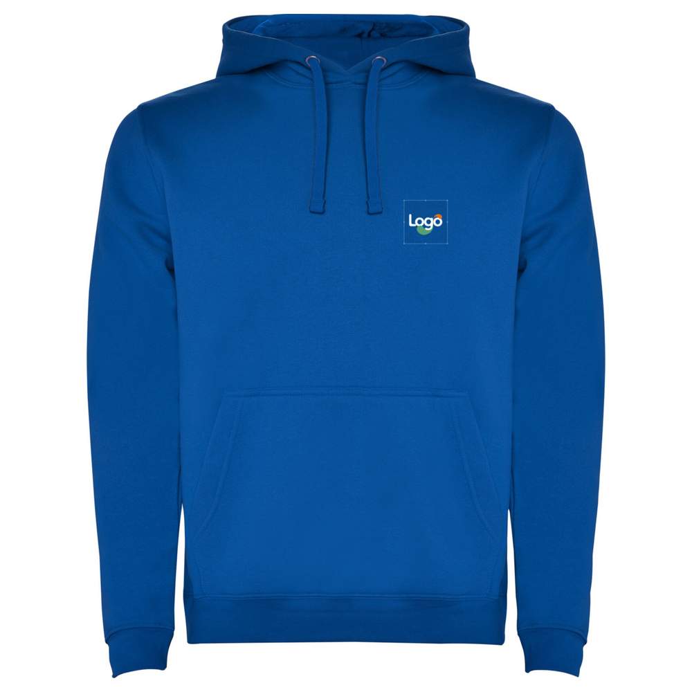 Det bicolorede sweatshirt Urban fra ROLY er perfekt til børn. Det har en indvendig hodekappe, en kontrastfarvet snørring, en kanguro lomme og ærm og talje i elastan ribbe 1x1. Denne barnemodel er designet uden snørring og har et fjernbart mærke. Den findes i flere størrelser og kan personaliseres med dit logo eller dit billede i broderi.