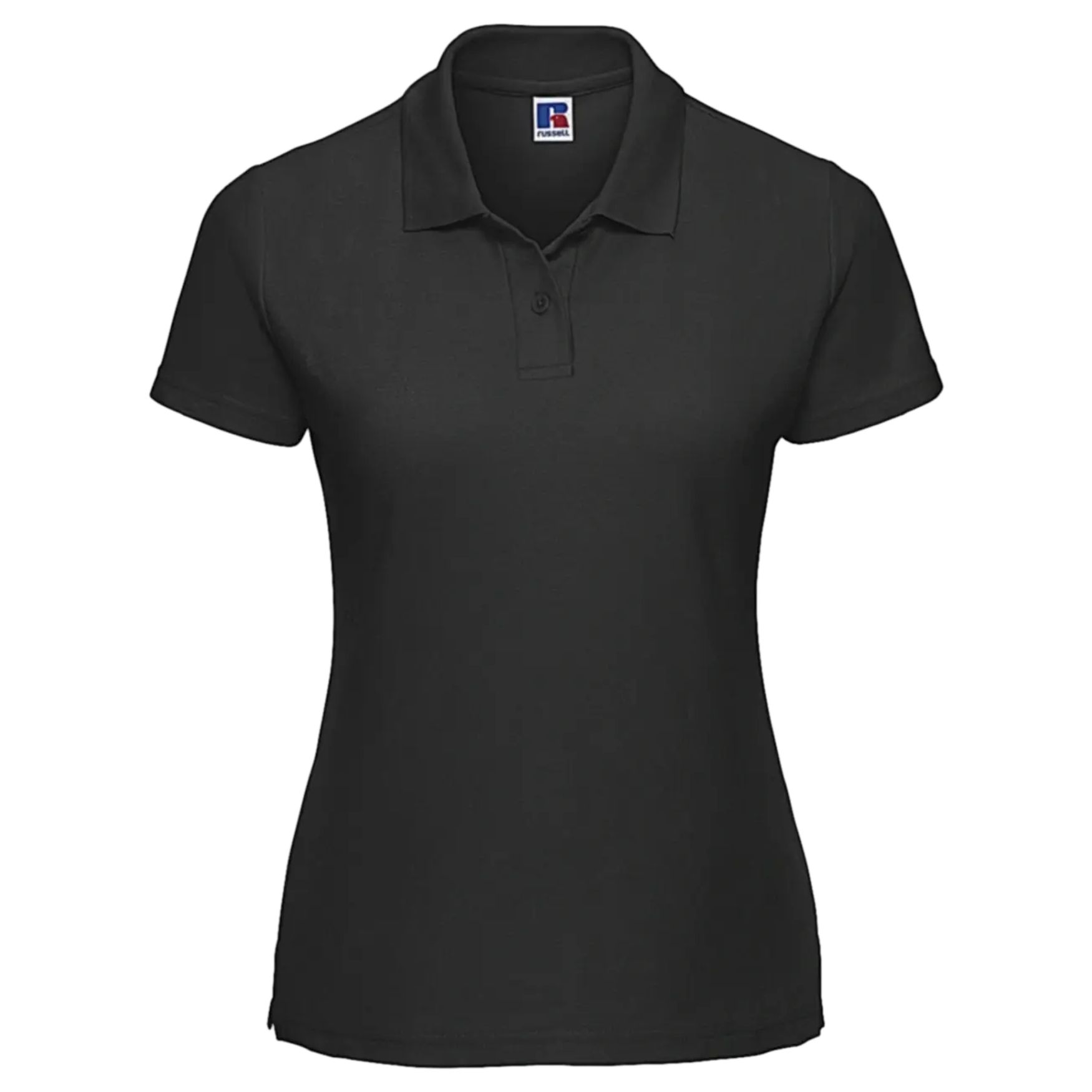 Polo piqué til damer er lavet af stof bestående af 65 % polyester og 35 % ringspun bomuld piqué. Den har ribkant ved kraven med nakkebånd, toknaps lukning i samme farve, lige ærmekant, sidesømme og en lige kant med slidser i siderne.