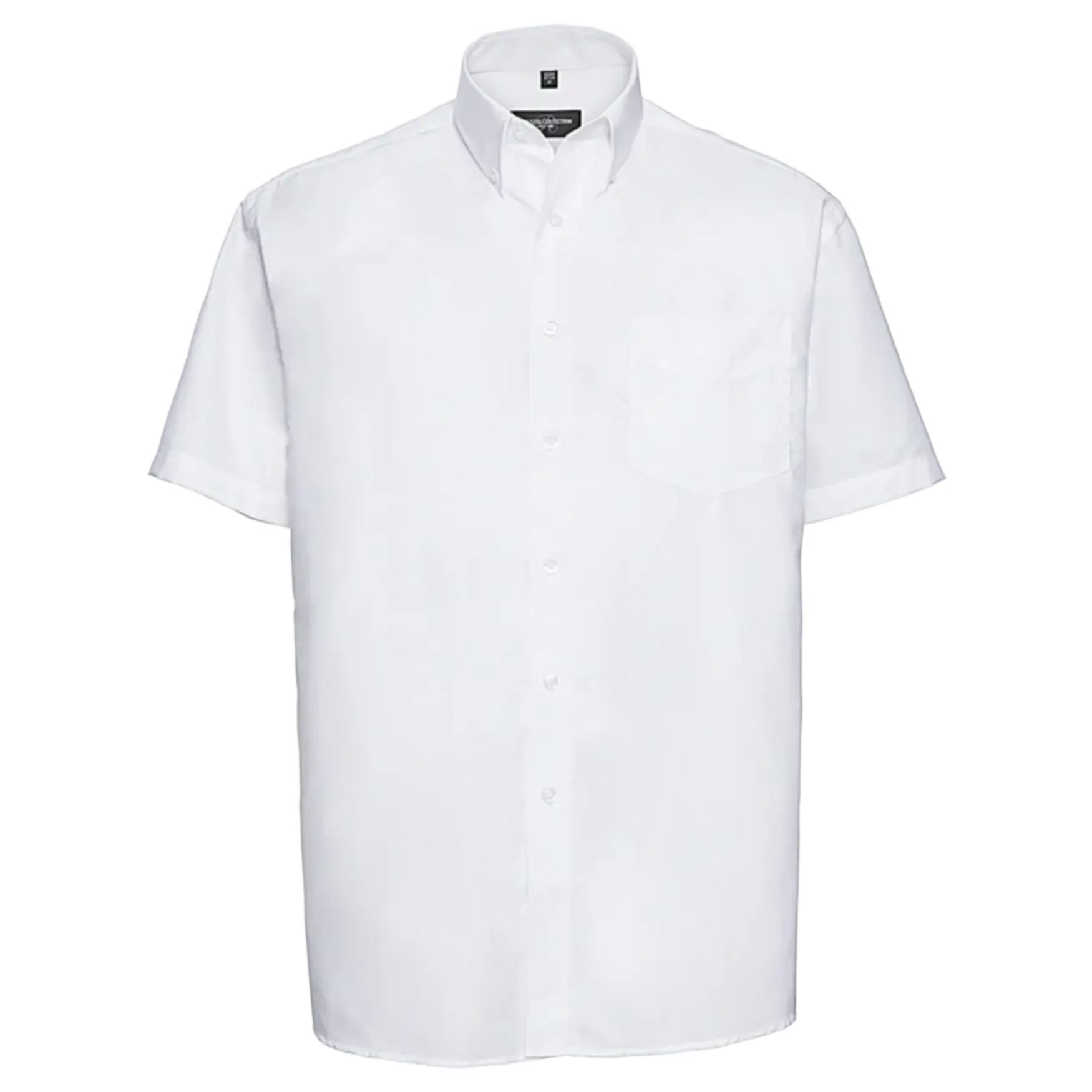 Klassisk Oxford-skjorte er en herreskjorte med korte ærmer med V-formet brystlomme, button-down spidskrave og klassisk pasform. Afrundet bund, skulderbærestykke med læg bagpå, reserveknapper.