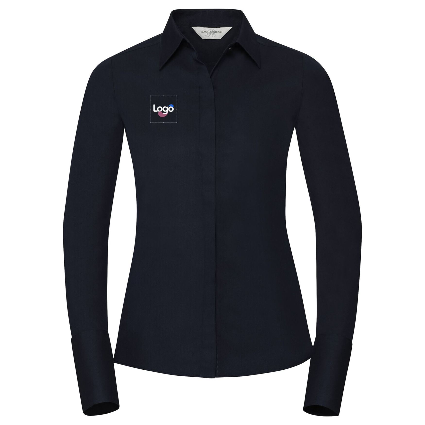 Ladies’ langærmet tilpasset ultimate stretch shirt COLLECTION personalisering r-960f-0 - Bright navy