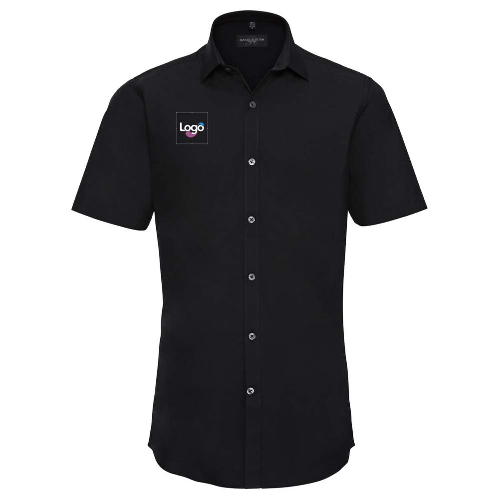 Denne korte ærmelet skjorte tilbyder optimal komfort takket være sin passende skæring og stof i stretchcotton. Dens elegante design forbedres med pinjer i ryggen og en rund bund. Uden lomme skiller den sig ud ved sin enkelhed og komfort. Den består af 75% cotton og 25% elastomerfester for øget holdbarhed og komfort. Muligheden for personliggørelse i broderi gør det muligt at tilføje dit logo eller dit visuelt udseende for optimal mærkeidentifikation.