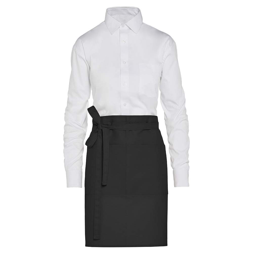 Denne korte bistro skørte med lomme er fremstillet af genbrugsmaterialer. Fint serge. Solid bundet bånd om taljen. Stor midterlomme med to afdelinger (40 x 20 cm). Dimensioner: 78 x 52 cm. Sammensætning: 65% genbrugspolyester, 35% genbrugsbomuld. Denne skørte kan tilpasses med broderi for at vise dit logo eller dit visuelle design.