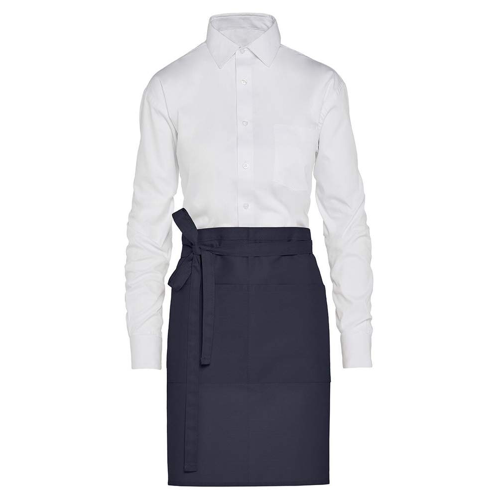 Denne korte bistro skørte med lomme er fremstillet af genbrugsmaterialer. Fint serge. Solid bundet bånd om taljen. Stor midterlomme med to afdelinger (40 x 20 cm). Dimensioner: 78 x 52 cm. Sammensætning: 65% genbrugspolyester, 35% genbrugsbomuld. Denne skørte kan tilpasses med broderi for at vise dit logo eller dit visuelle design.