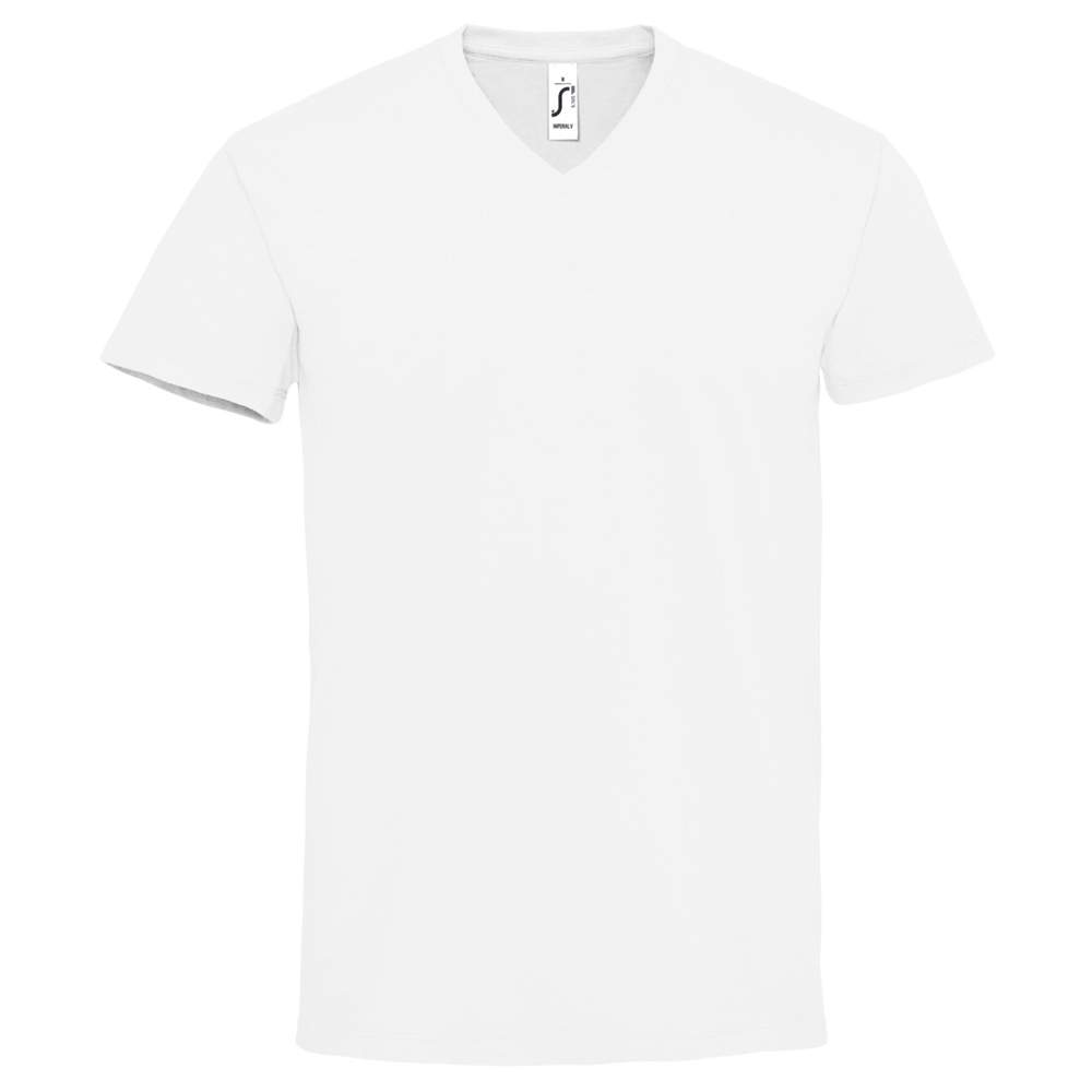 T-shirts til mænd med "V" hals i jersey 190 fremstillet af 100% semikombineret Ringspun for optimal komfort. Det har et renhedsband på halsen og en V-formet halskantsbinding. Dens korte ærmer og rørformede skæring giver den en moderne og afslappet stil.