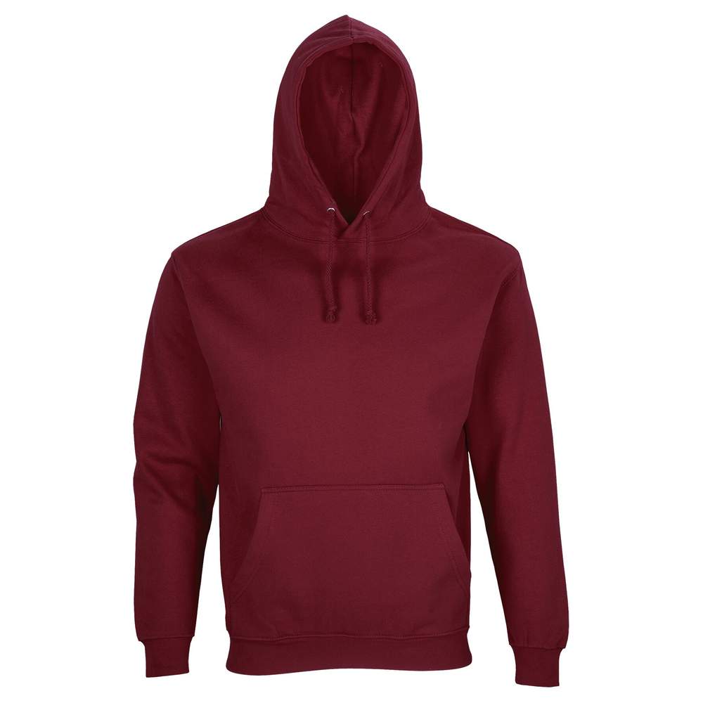 Unisex sweatshirt med hætte. Monterede ærm og skåret søm. Bundkant 1x1 til håndleddet og bunden. Kængurupose. Dobbelt hætte med snor i samme farve og metaløjet. Halvmåne og rengøringsbånd på jersey i halsen.