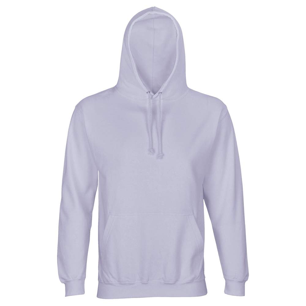 Unisex sweatshirt med hætte. Monterede ærm og skåret søm. Bundkant 1x1 til håndleddet og bunden. Kængurupose. Dobbelt hætte med snor i samme farve og metaløjet. Halvmåne og rengøringsbånd på jersey i halsen.