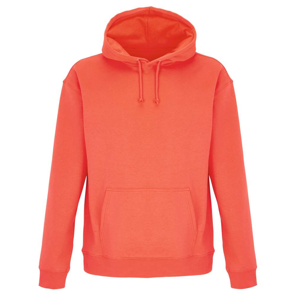 Unisex sweatshirt med hætte. Monterede ærm og skåret søm. Bundkant 1x1 til håndleddet og bunden. Kængurupose. Dobbelt hætte med snor i samme farve og metaløjet. Halvmåne og rengøringsbånd på jersey i halsen.