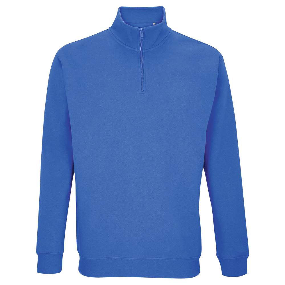 Unisex sweatshirt med trucker-colli, der tilbyder komfort og en afslappet stil. Dette model har monterede ærmer og en syet skær for en bedre passeform. Det har 1x1 ribsæl i håndleddene og i bunden af kroppen, samt en trucker-colli med en plastik-zip i samme farve og en passende metal-zipper. En halv-måne og et renhedsband i jersey er indarbejdet i halsen for en færdiggørelse.
