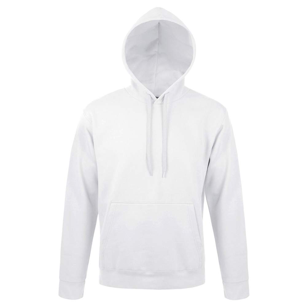 Unisex sweatshirt med hætte. Ærm og bunden i ribbeælm. Monterede ærmer. Kangaroo lomme. Hætte med streng farvetonet. Justeret pasform.