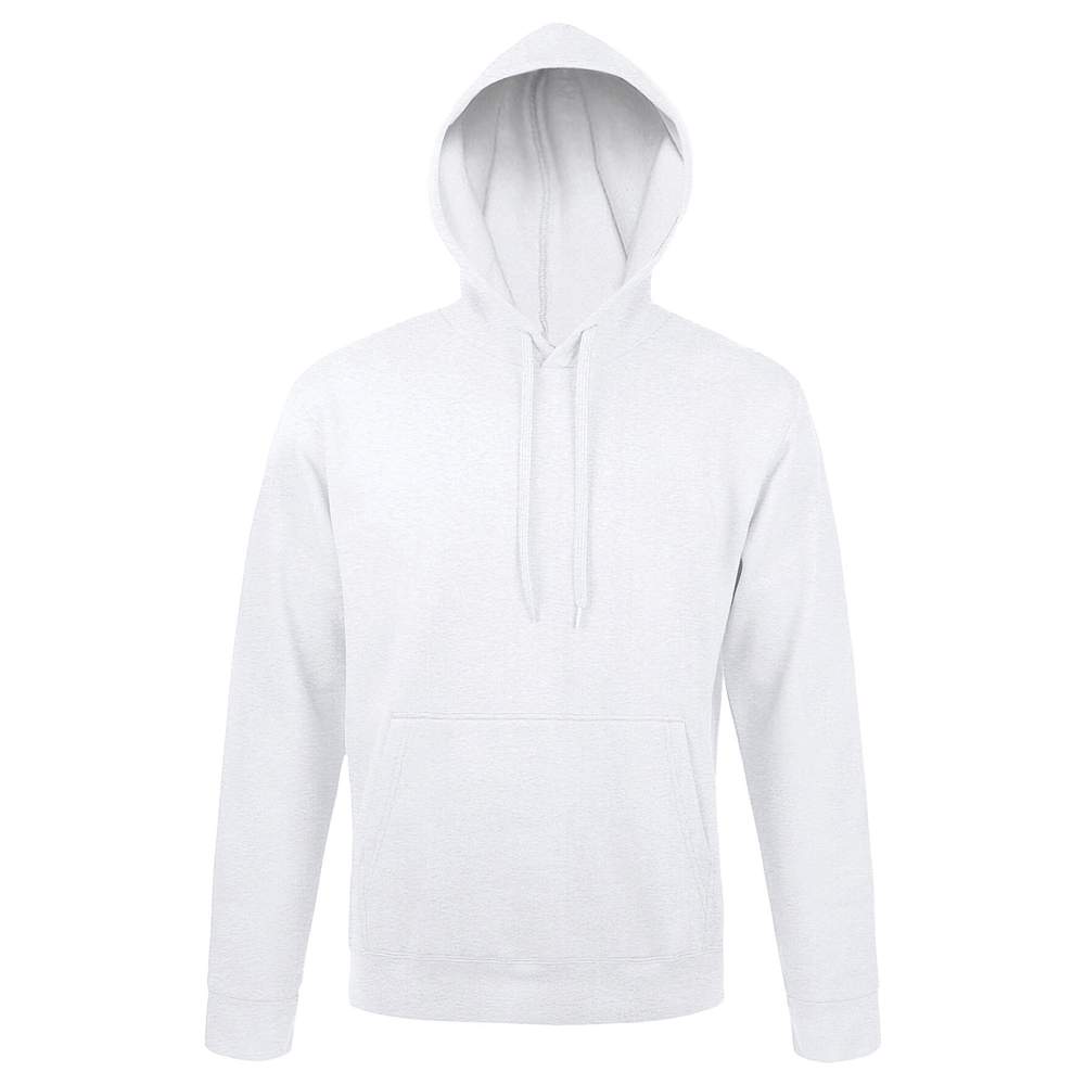 Unisex sweatshirt med hætte. Ærm og bunden i ribbeælm. Monterede ærmer. Kangaroo lomme. Hætte med streng farvetonet. Justeret pasform.