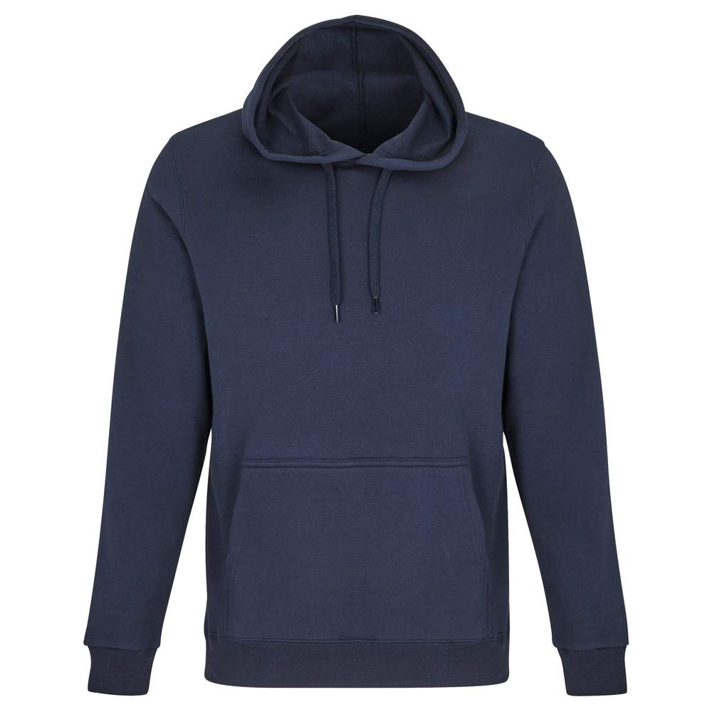 Unisex sweatshirt med hætte. Ærm og bunden i ribbeælm. Monterede ærmer. Kangaroo lomme. Hætte med streng farvetonet. Justeret pasform.